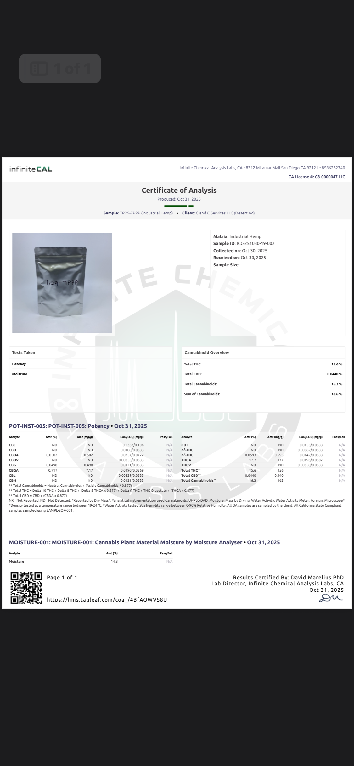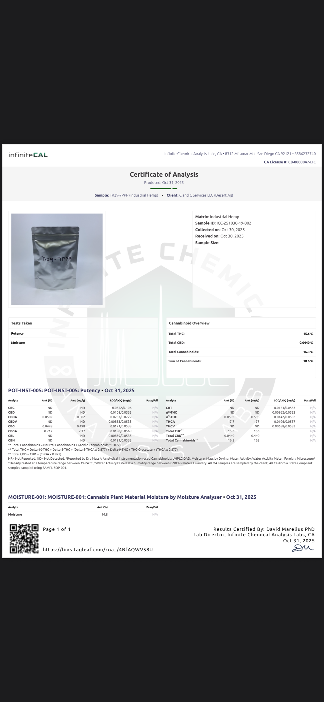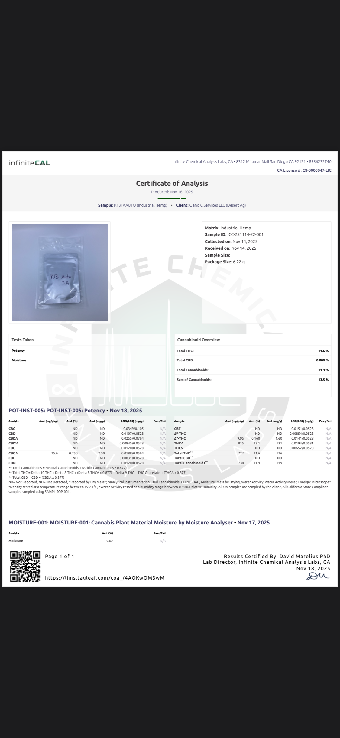 We are happy to have you come out and quarantine your lots for testing and can assist with logistics. We also have more material being planted and are happy to do contract grows.