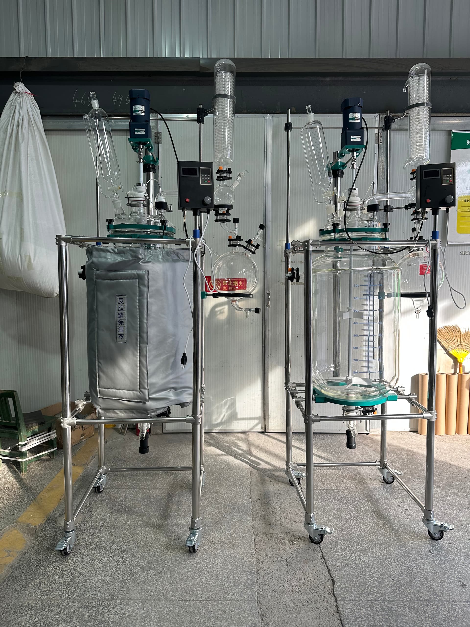 Description: High-quality borosilicate glass reactor with jacketed design, suitable for crystallization, filtration, and other laboratory applications.