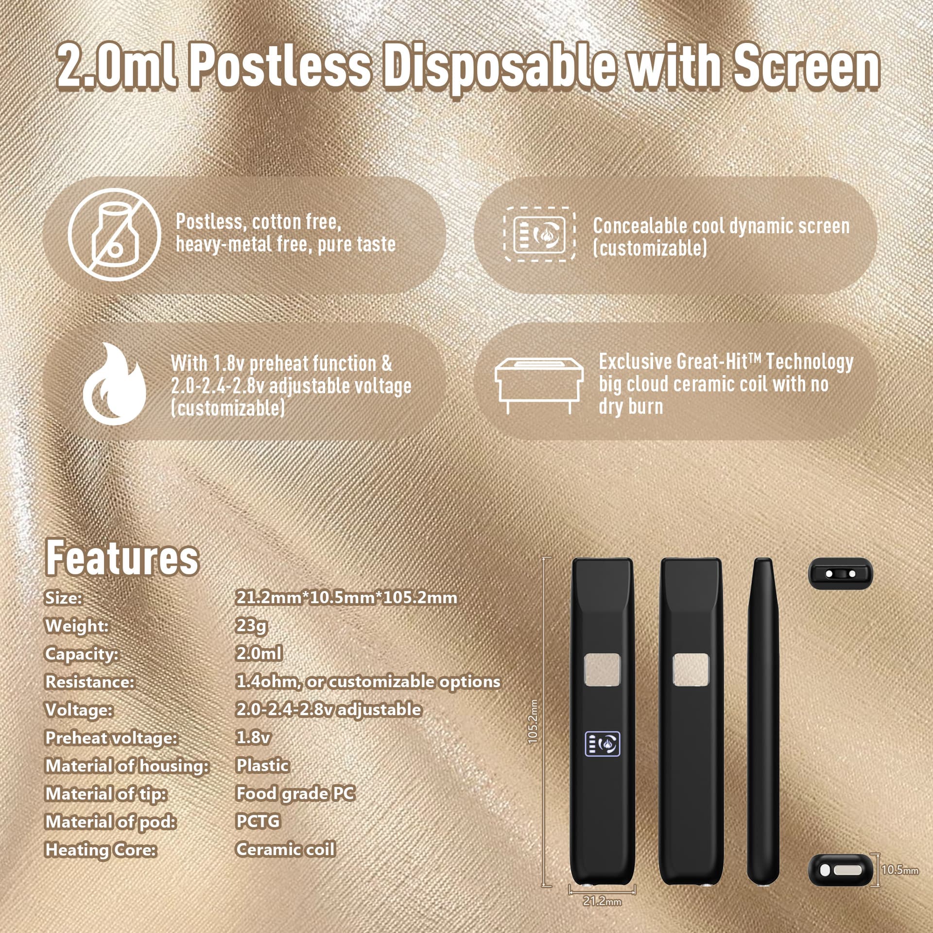 Custom 1.0ml+1.0ml postless disposable with screen!