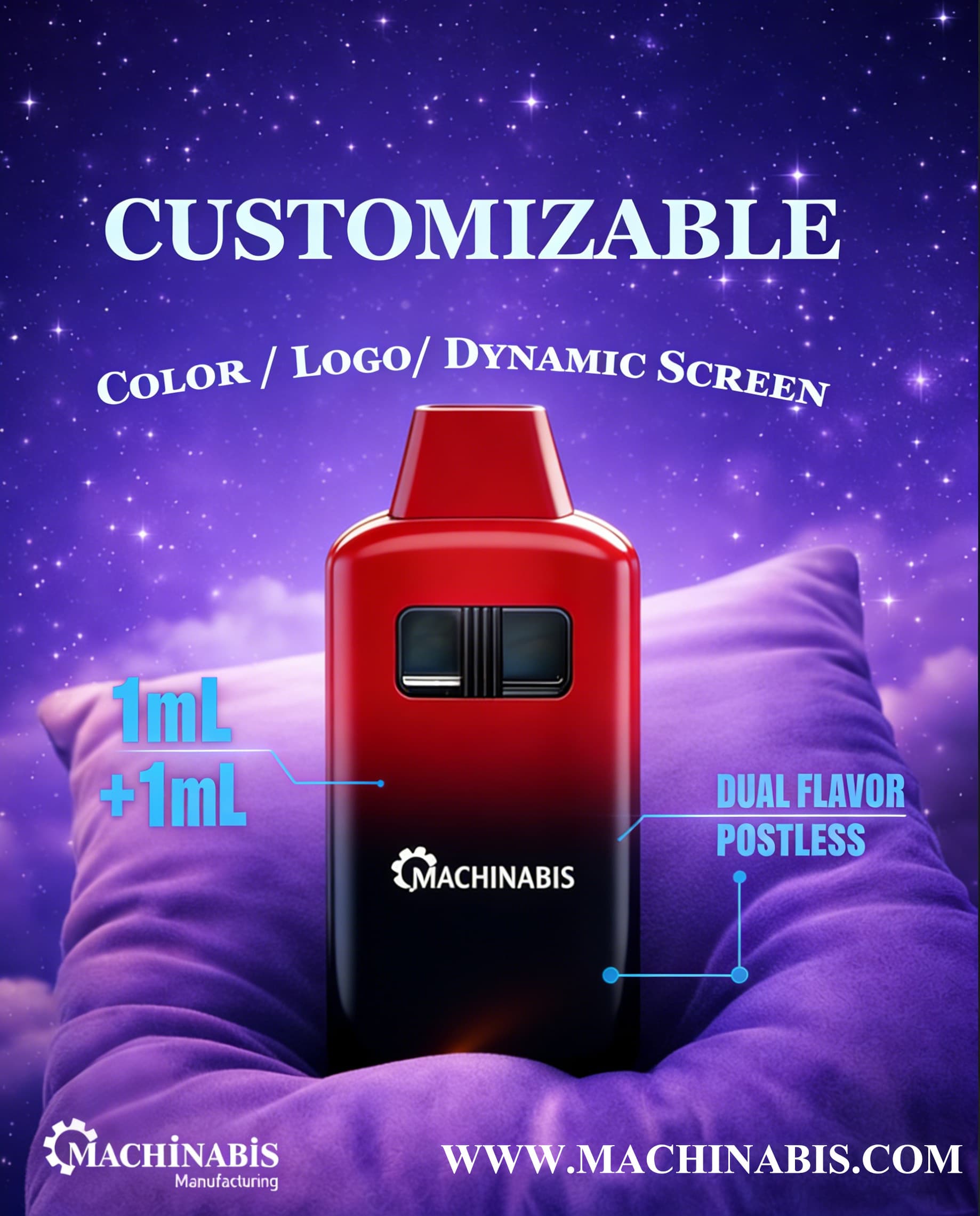 Dual flavor Disposable Device – 1ml+1ml Postless Screen Your brand, your rules! ![]()