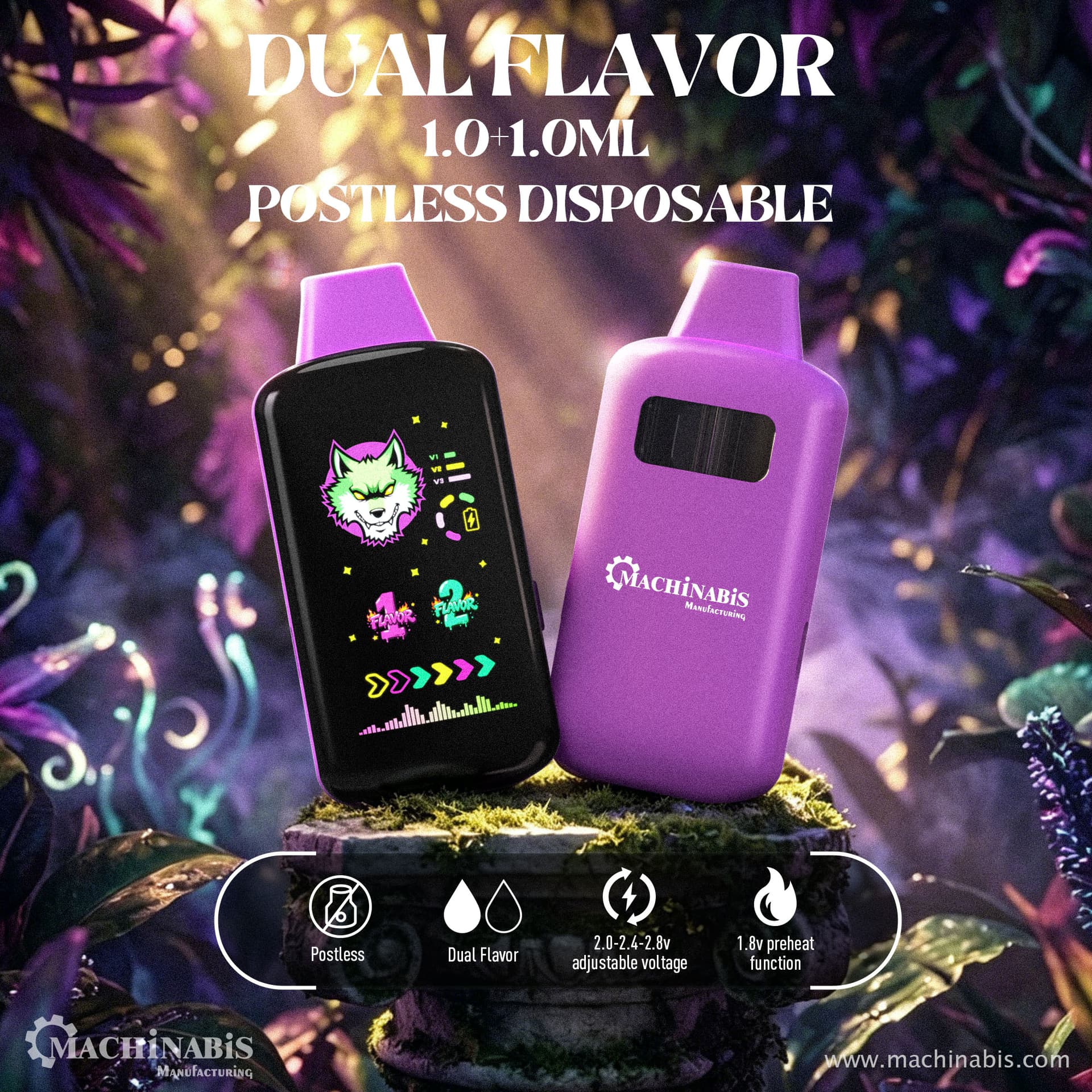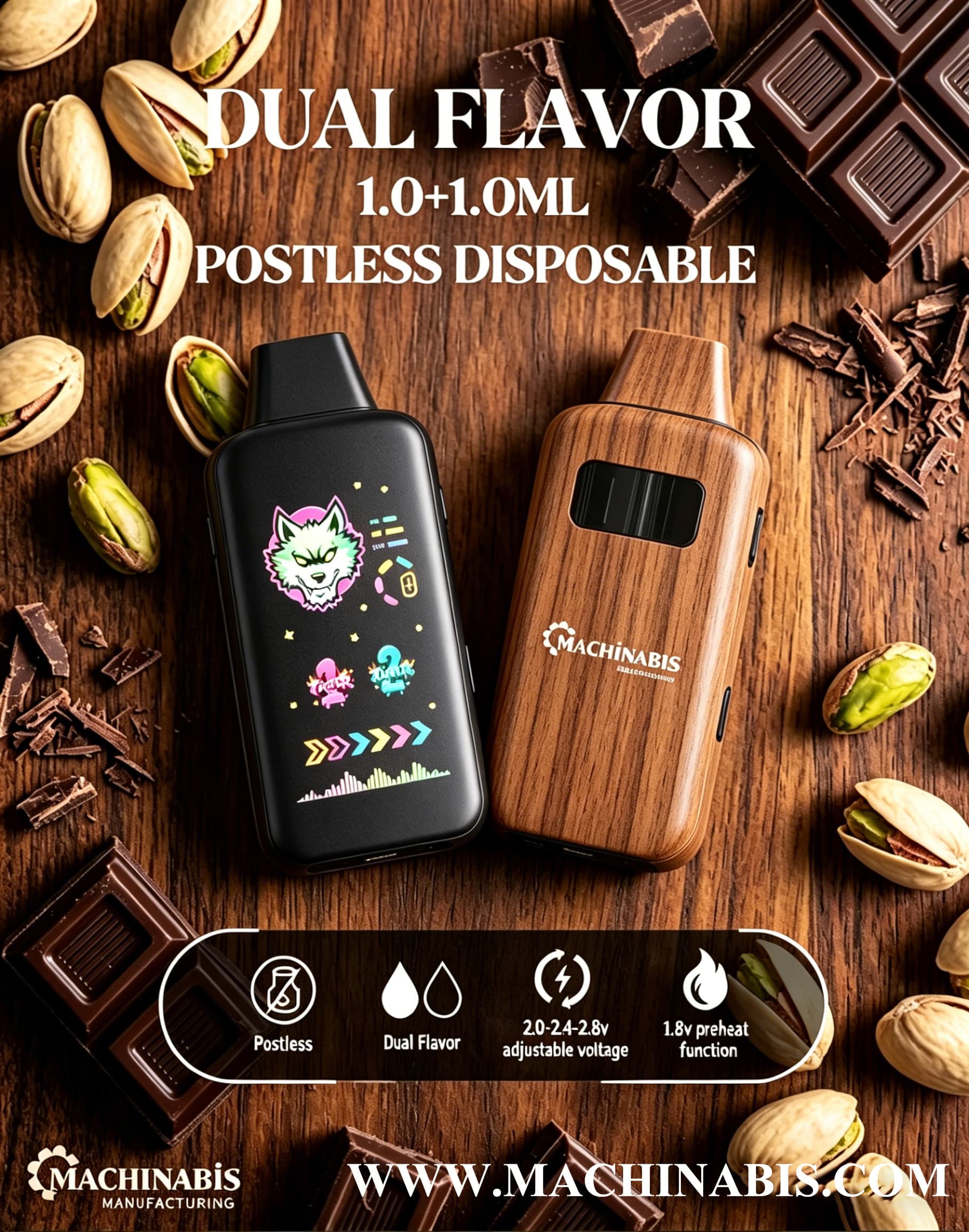 Dual Flavor Choices (button switch)+Postless (cotton-free, heavy-metal free)![]()