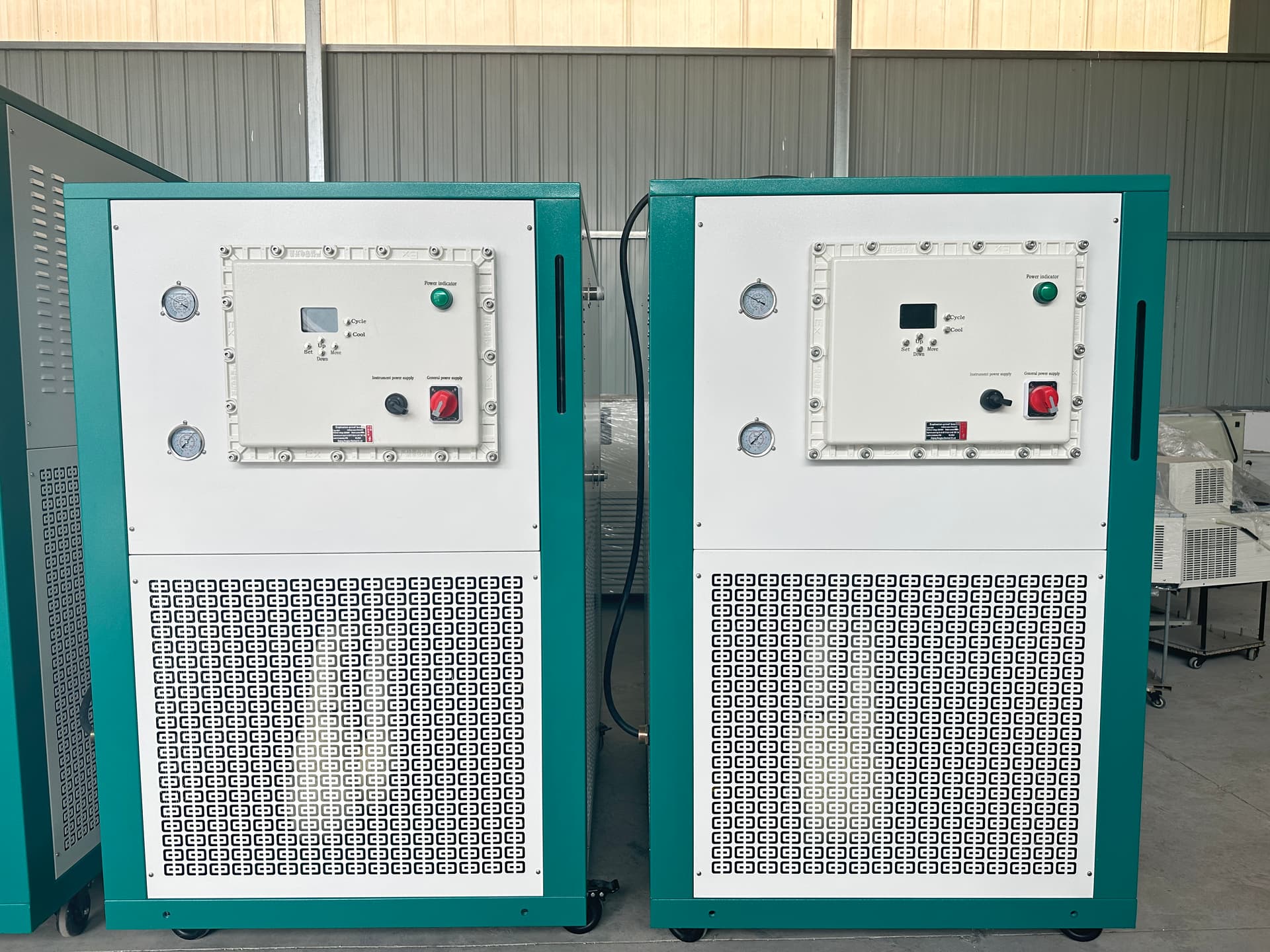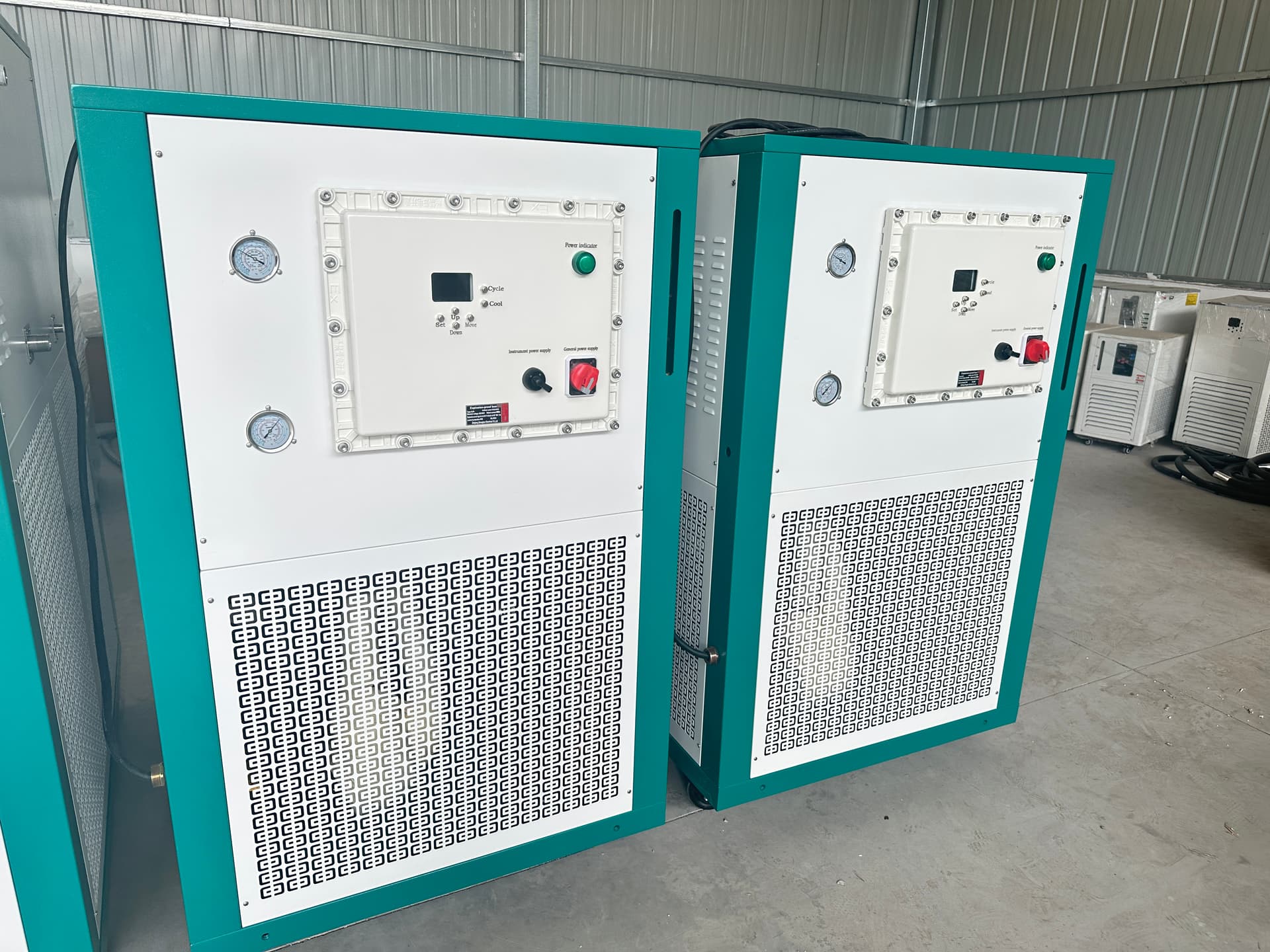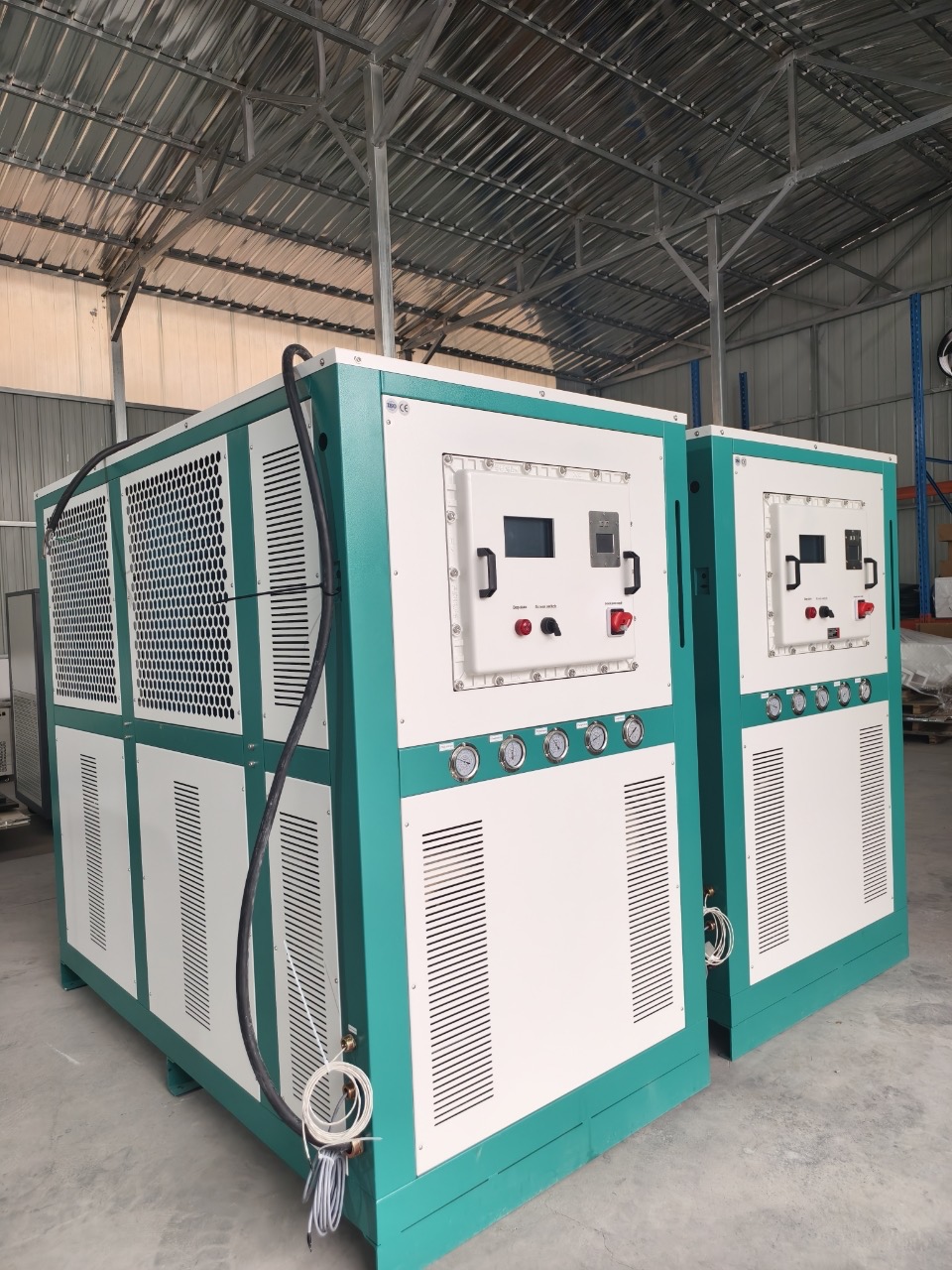 Chillers 500/80 and 300/80 in stock, equipped with Bitzer compressors and 485 communication interface. High-quality and well-configured! DM me for more info.