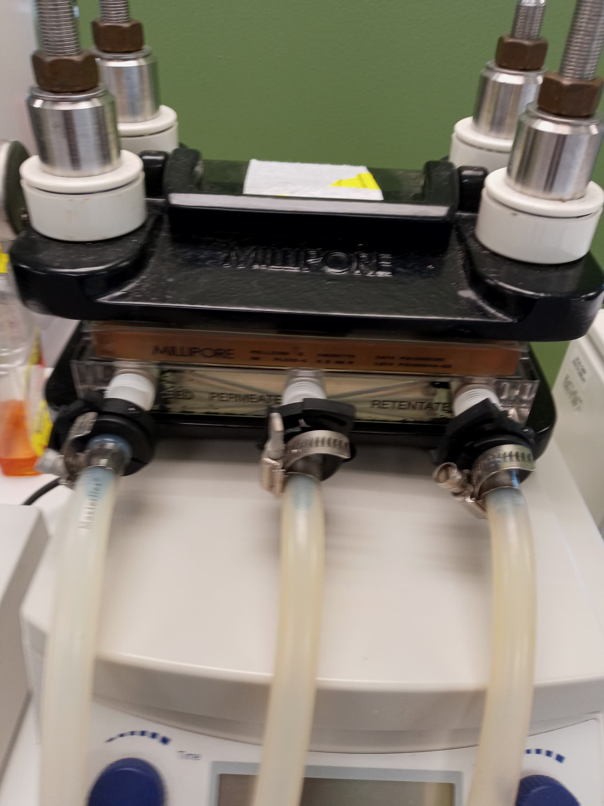 You get pressure from running a peristaltic pump on the intake side with a rolling clamp restrictor on the retentate side to increase transmembrane pressure, you monitor the cross membrane pressure using a pressure detector and three pressure probes. You don’t really see pressures higher than 30 psi using a peristaltic pump. I’m sure one could change out the membranes and run higher pressure, but I have not.