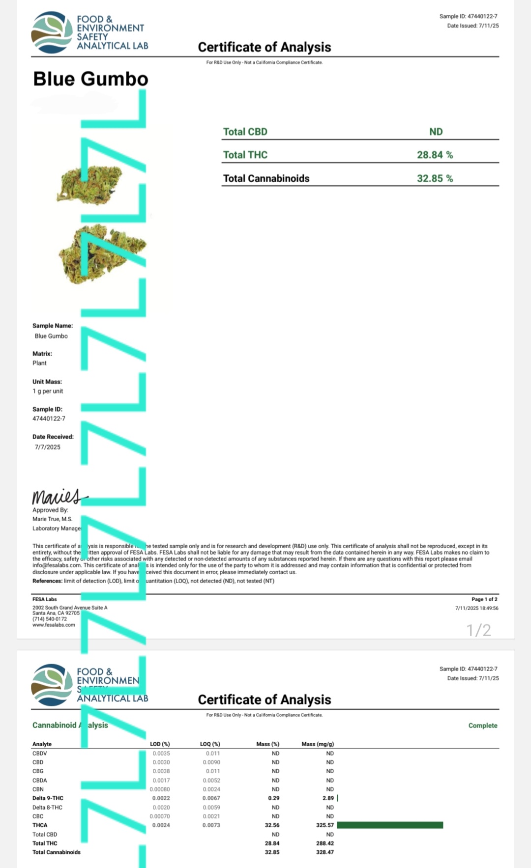 All flower is hemp compliant and tested to under 0.3% D9
