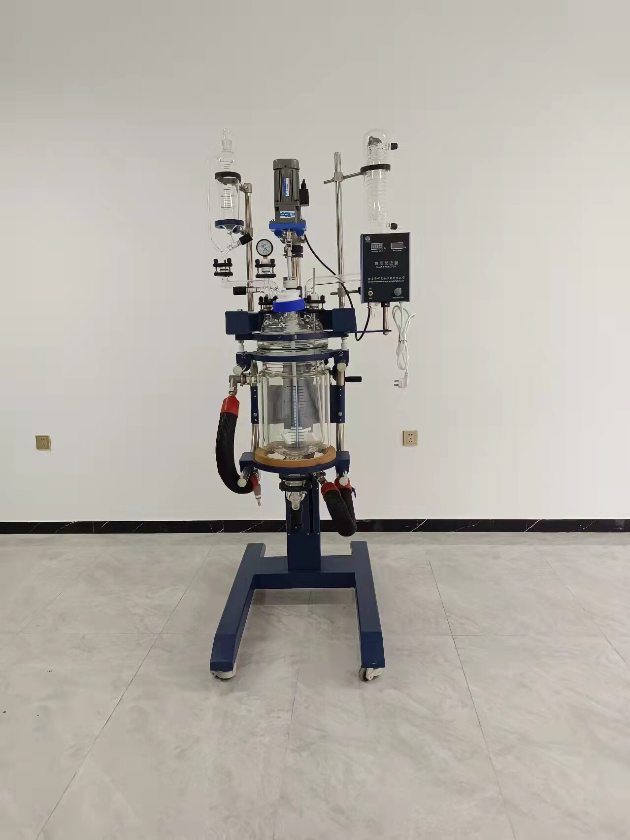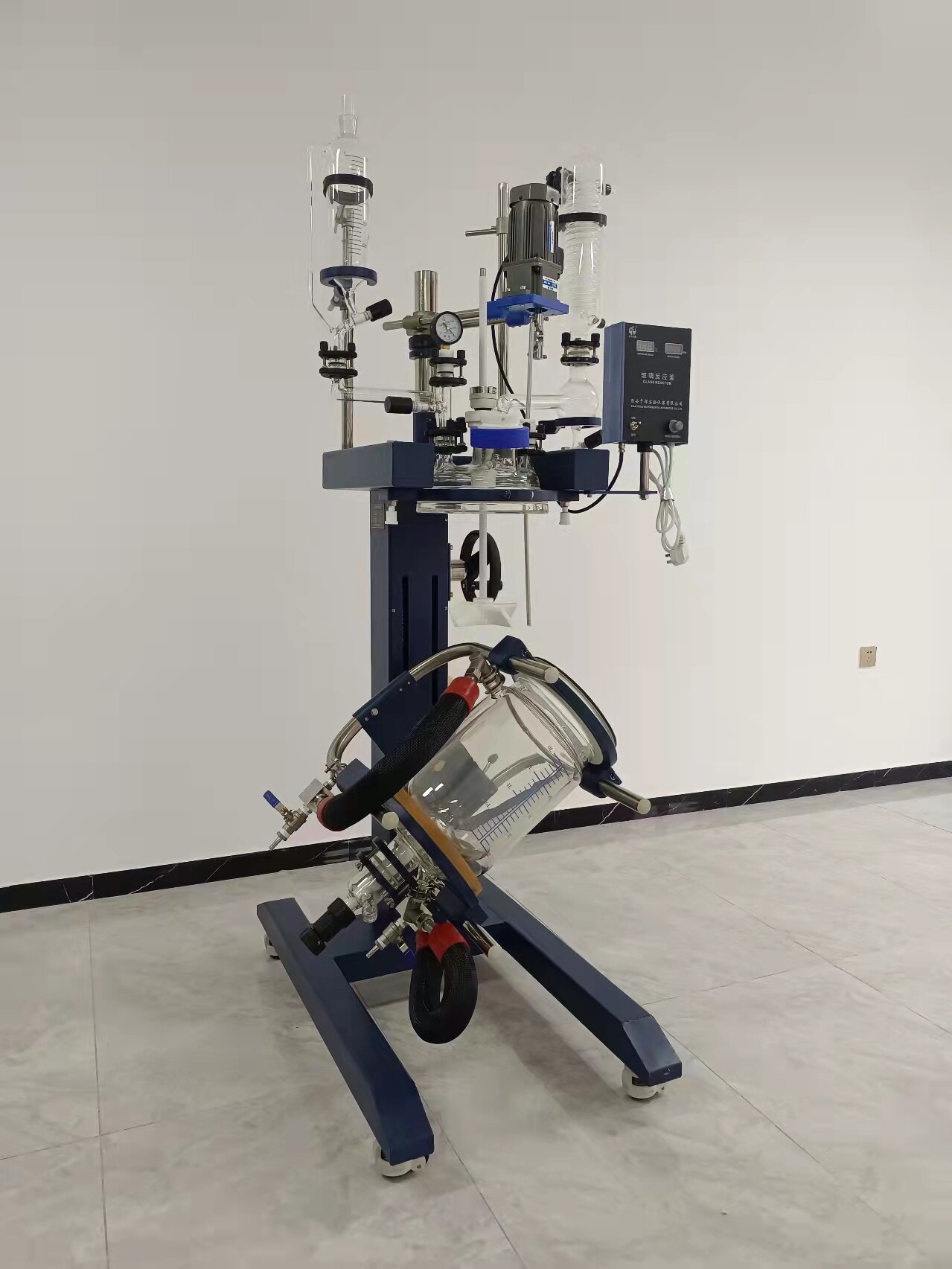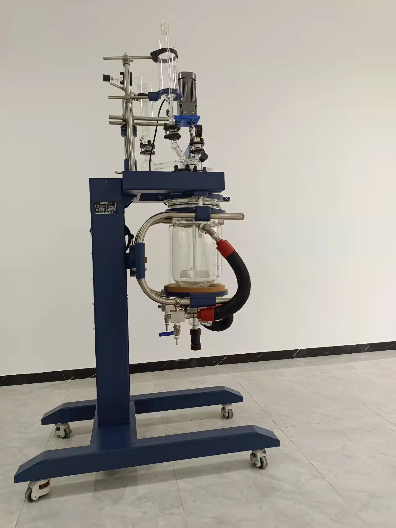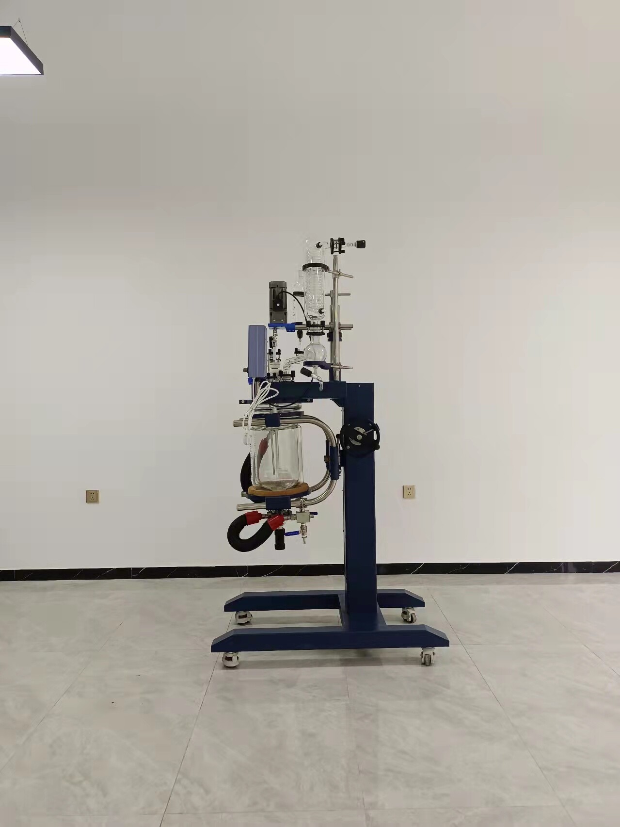 Here is the 100L jacketed glass reactor with PTFE coated frame.