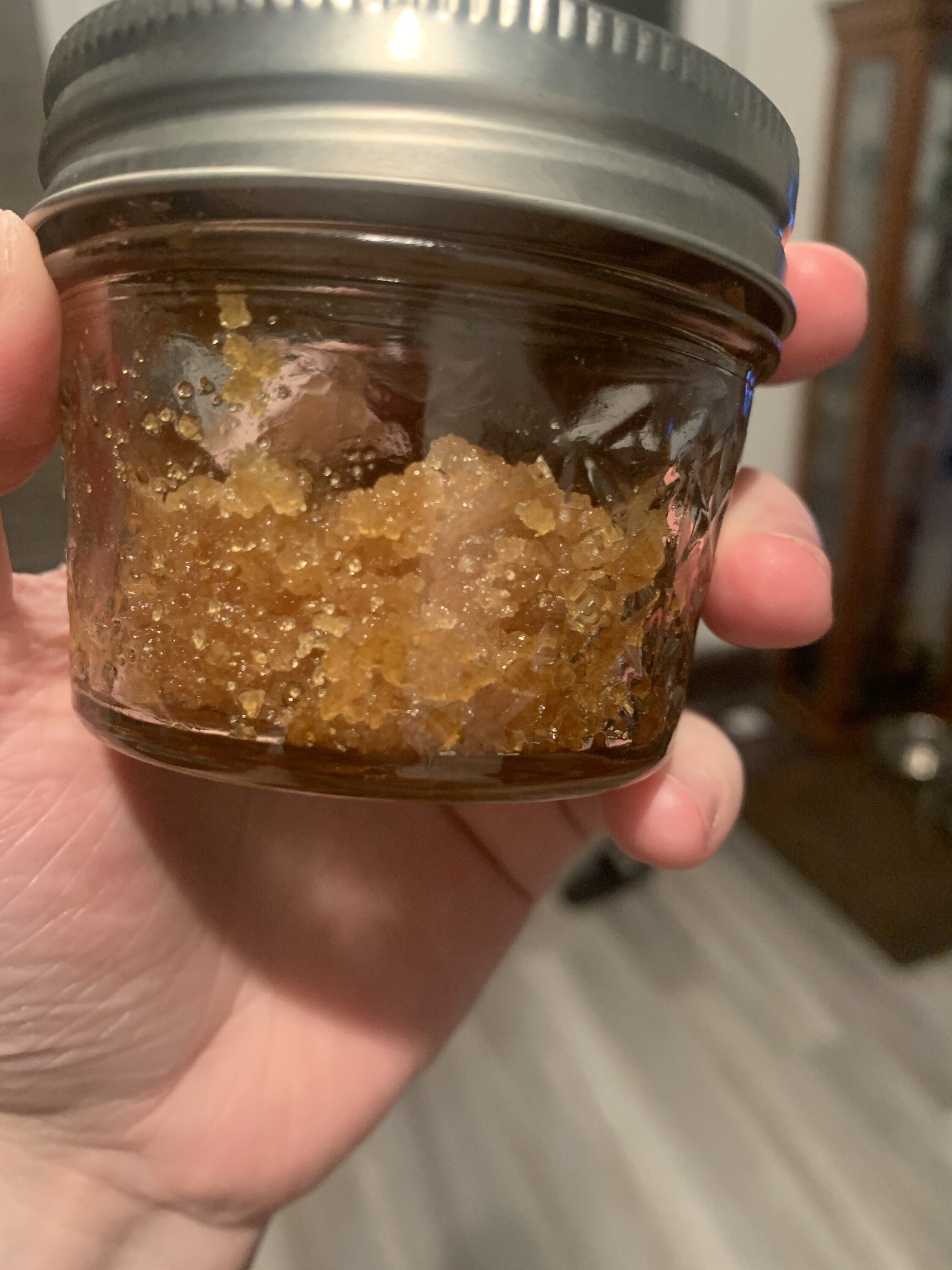 I had a grower ask for shatter recently with some fire sugar trim. I told him it will most likely sugar out with in a few days. He sent me this pic saying they’re now jarring it and selling it as sauce lol