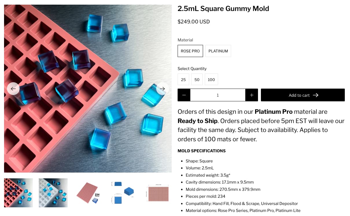 - 21x pcs Dark City 2.5ml Platinum Square (234 cavities/mold) [$85/ea]