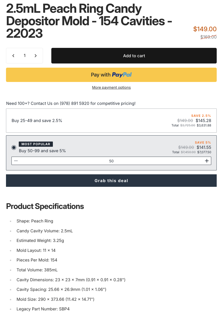 - 15x pcs Bold Maker 2.5ml Ring (154 cavities/mold) [$85/ea]