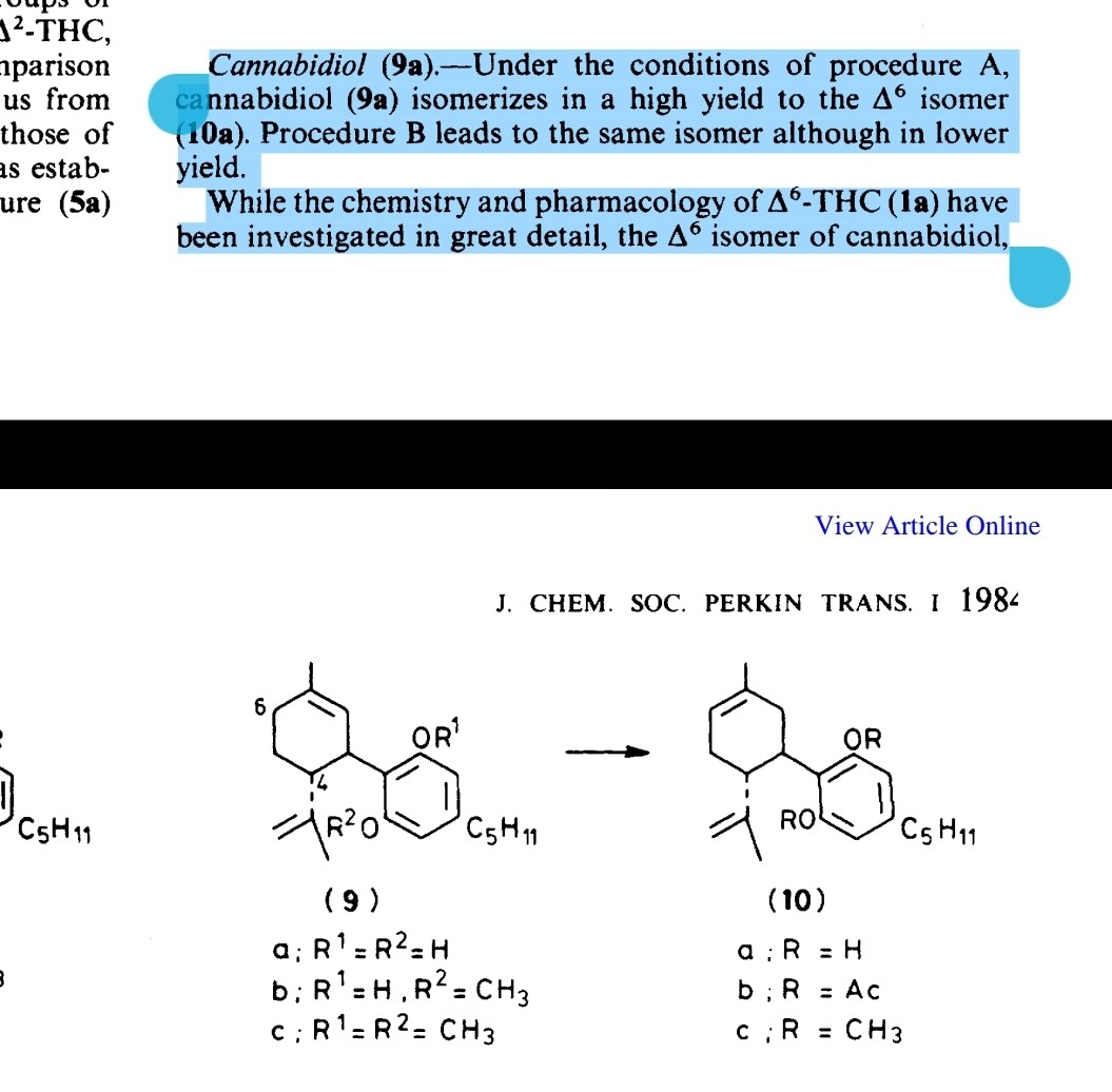 Read the d10 paper, they take cbd and do the potassium tert butoxise reaction to it to make D8 cbd (they shift the double bond on cbd from the 9th position to the 8th without closing the ring)