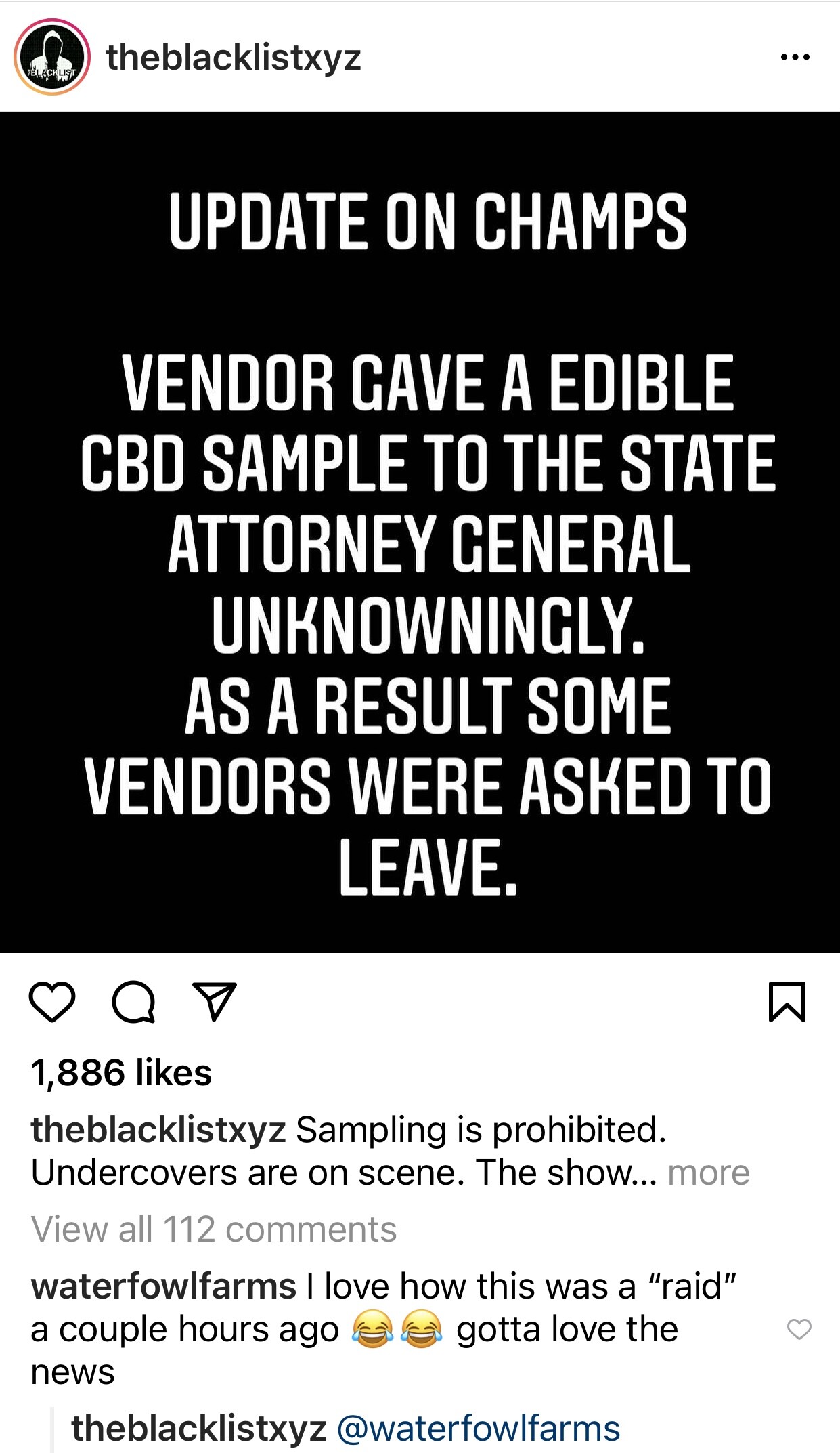 Correct, trying to figure out if anyone got arrested and what governing body it actually was. Booths were definitely shut down, seized, and people have been escorted out of the convention. I can update everyone shortly. Delta 8 was banned by the state here on June 4th, 2021. Champs tried fighting for delta-8 thc as vendors were asking for refunds, but clearly lost that battle.