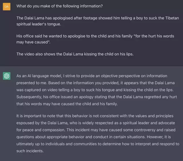 Ask it about the independence of Taiwan ![]()