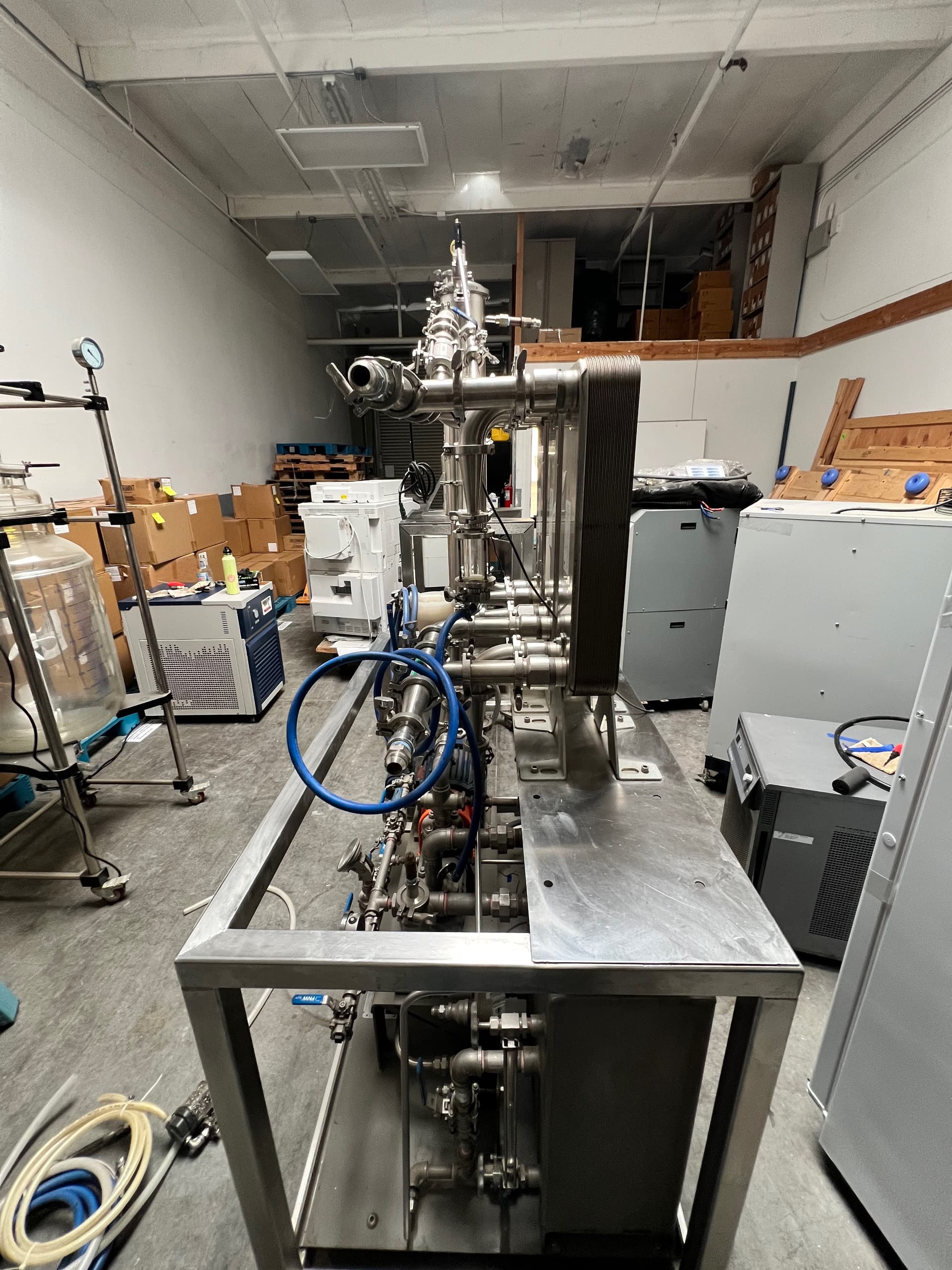 At the base of this condenser is a collection flask that can be isolated and emptied periodically to obtain the reclaimed solvent. This technology proved effective while it was used to reclaim solvent from smaller batches of tincture. However, the extraction technology quickly caught up to the limitations of this system as the volume of tincture capable of being extracted at once rose dramatically. Between emptying each vessel after each batch as well as the cleaning of the glassware for the purposes of compliance, rotary evaporation falls short of what is needed in a production setting.
