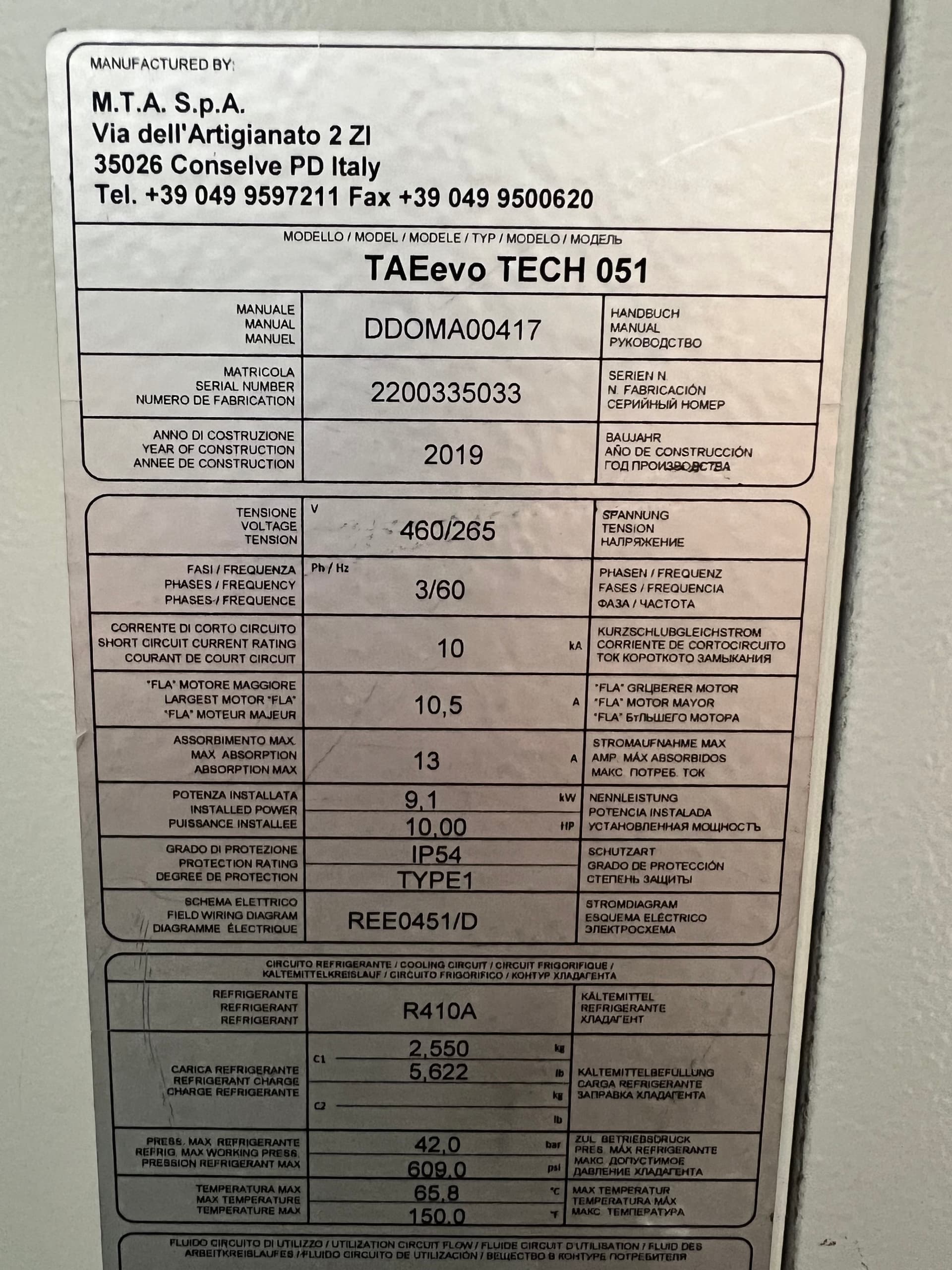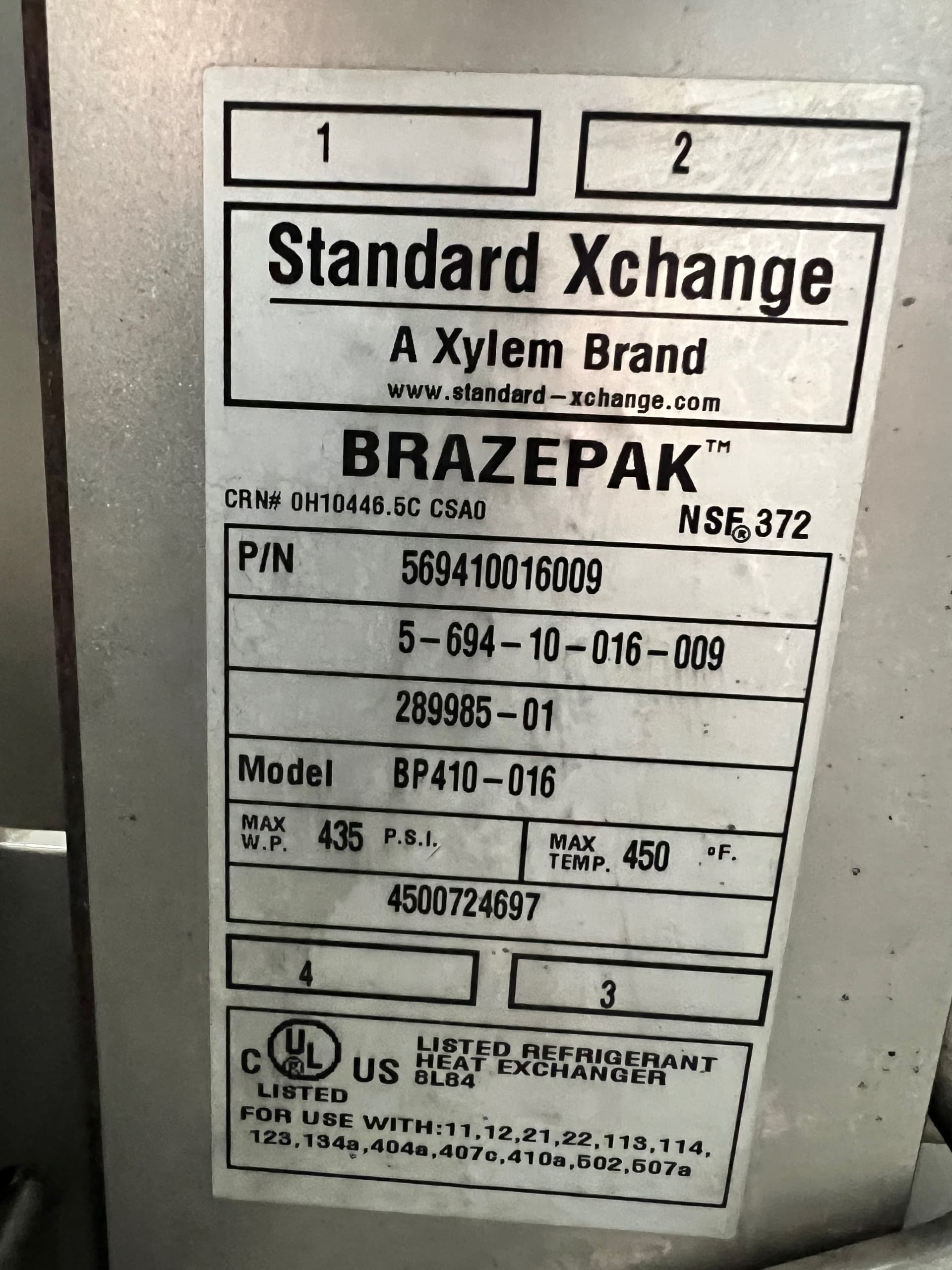 Transfer Fluid Flow: 25 GPM (25-40 PSI)