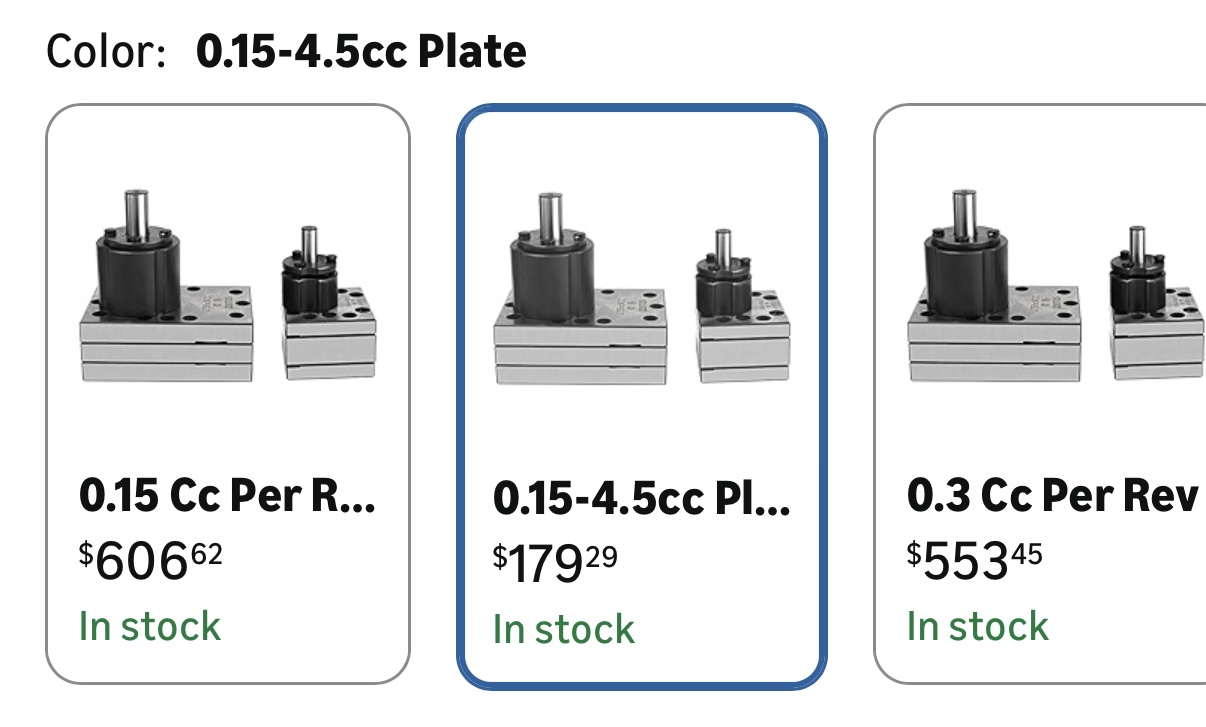 That’s an interesting graphic, but it still does not make it clear what exactly is a 0.15cc-4.5cc PLATE listing for $179 is compared to the 0.15cc per rev listing for $606.