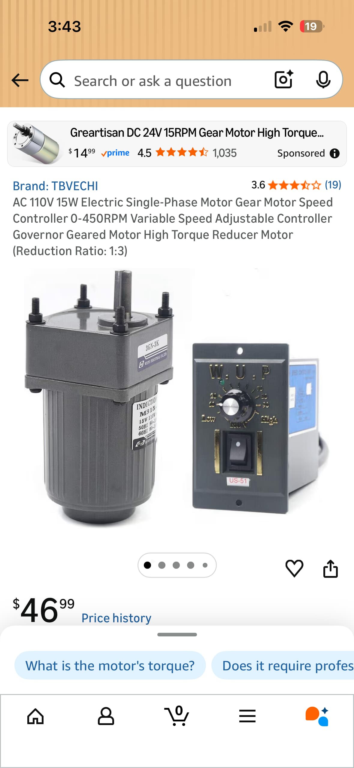 Stepper motor sounds like a good idea. I was just surprised that the gear motors like the Witte ones I was looking at existed on Amazon. I was going to try one of the small ones. .15cc or .3cc for my spinning band