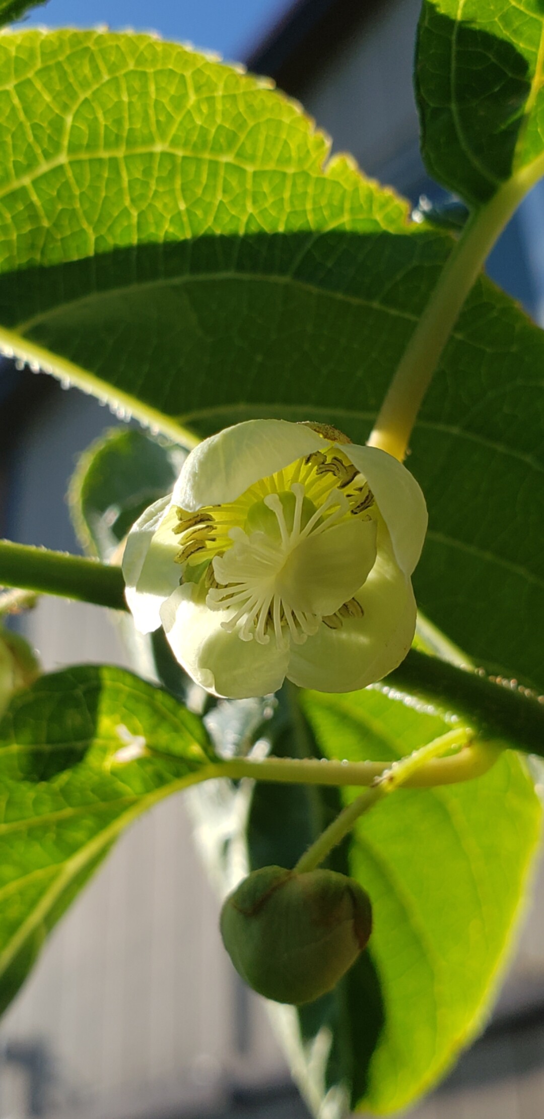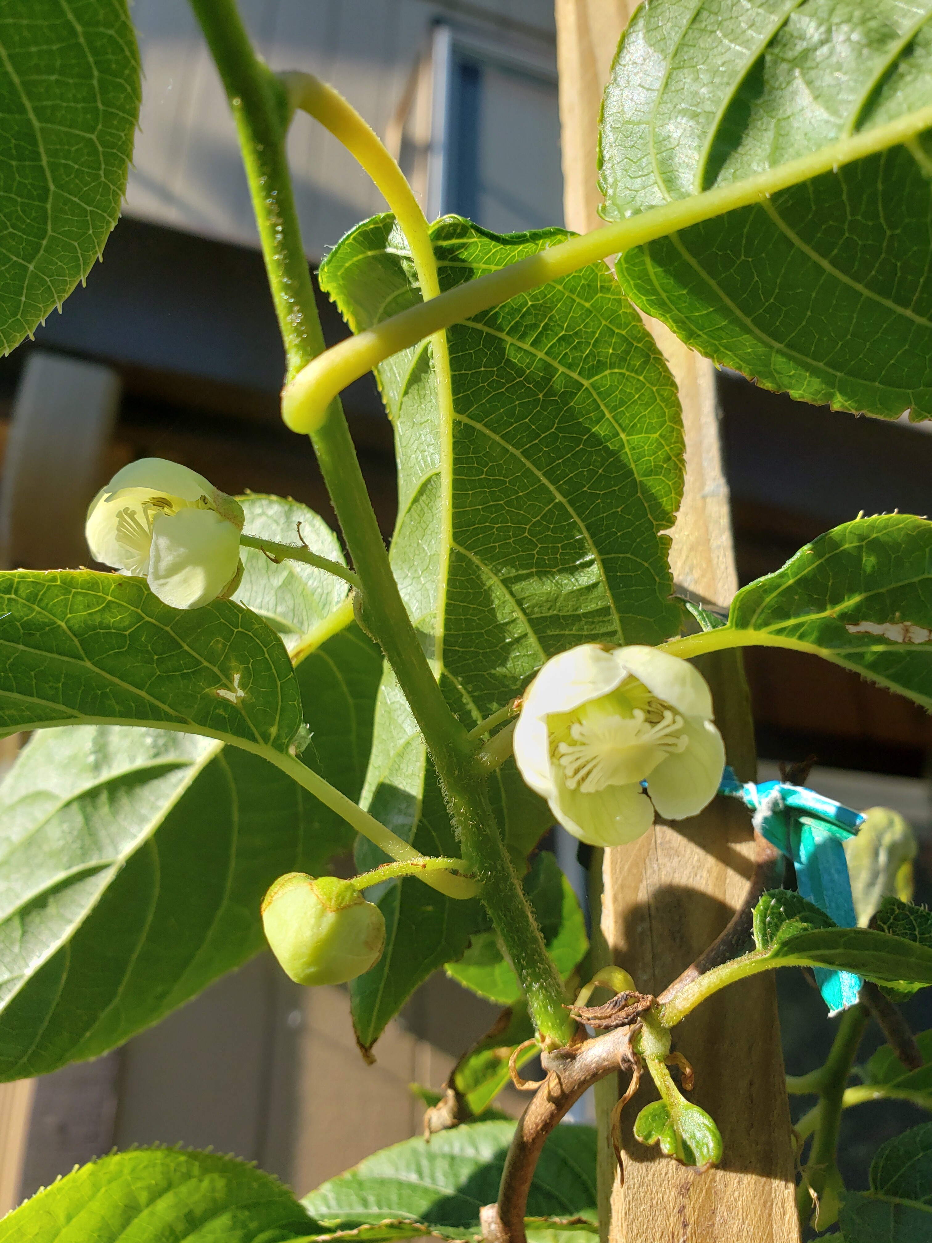 My Issai kiwi decided to finally open its blossoms this morning. Almost looks like a mono-colored passion flower (that’s the size of a finger nail).