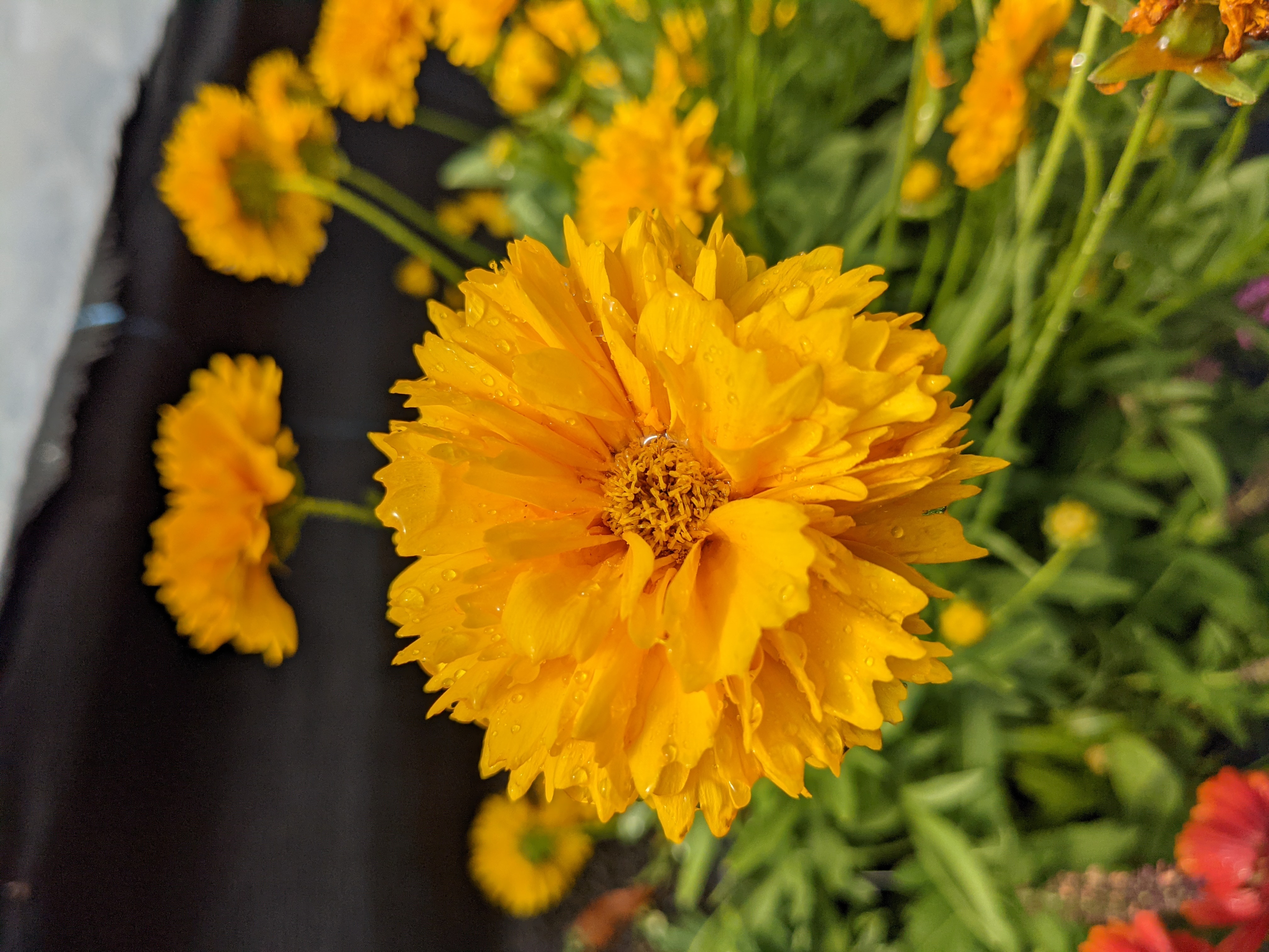 This ones holding a rain drop on that bottom right petal, I’m assuming it held on to it from yesterday when it closed up when it was raining, and put it out for display today when it opened up again.