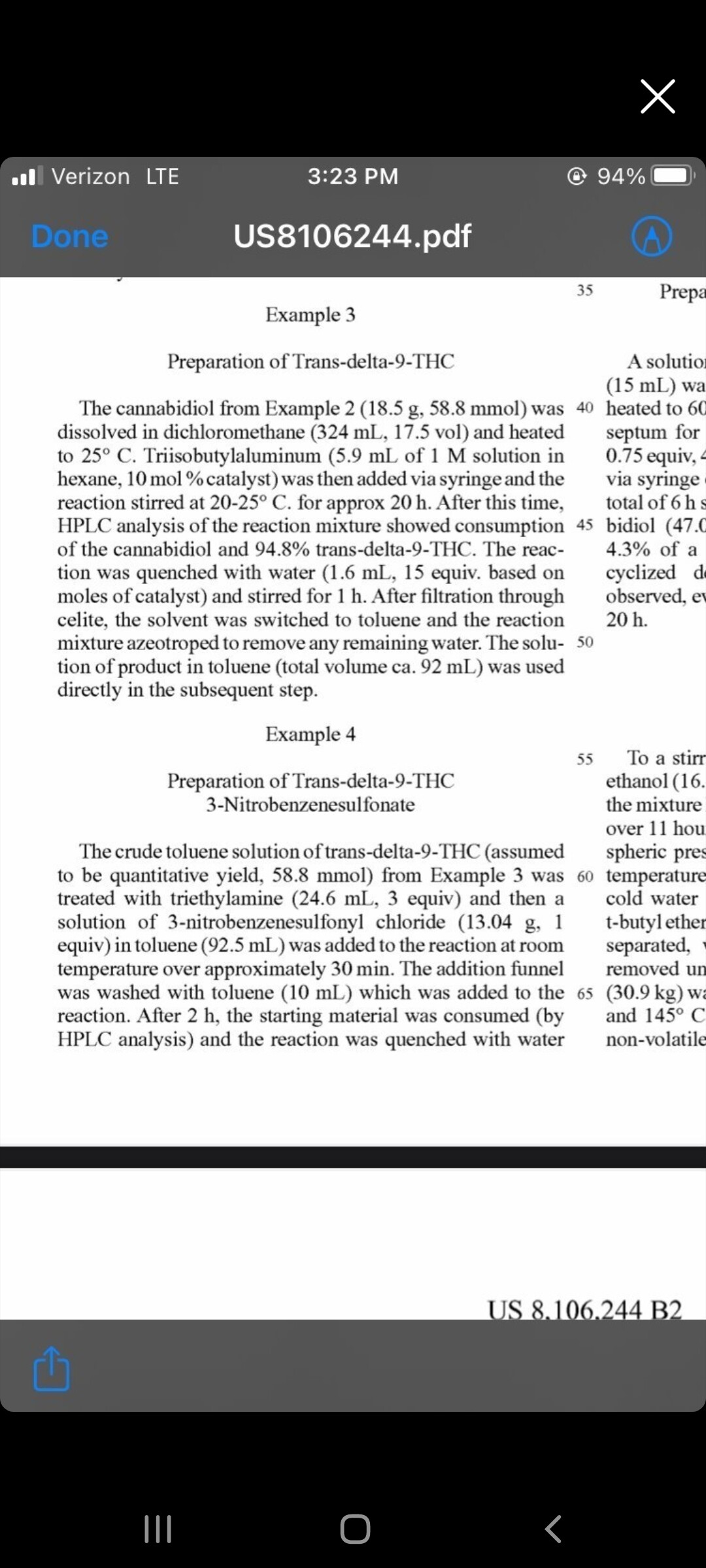 Correct, this is the screen shot that I was referring to. yes there is a lot of stuff information and procedures left out of this data that are required to complete this reaction successfully. As what has been stated in this patent, like any patent, is rather vague.