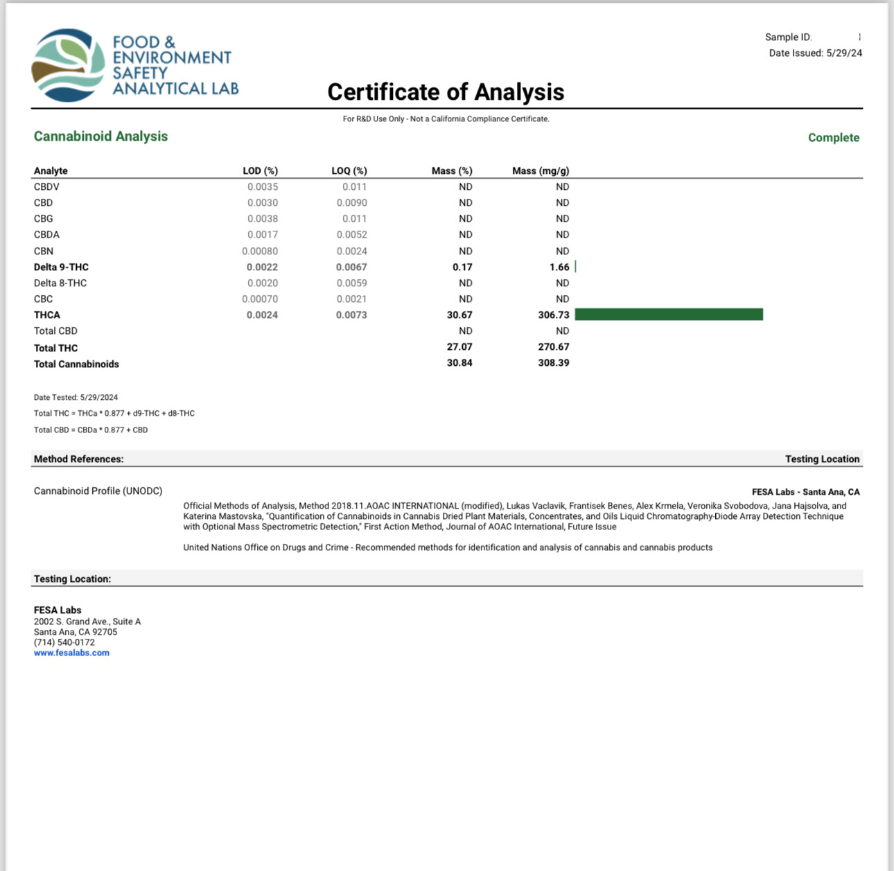 Grown indoor under the right conditions, cool slow dried at 55, and cured at 55 In dark everything done right roughly 50% Of the test pop over .3%