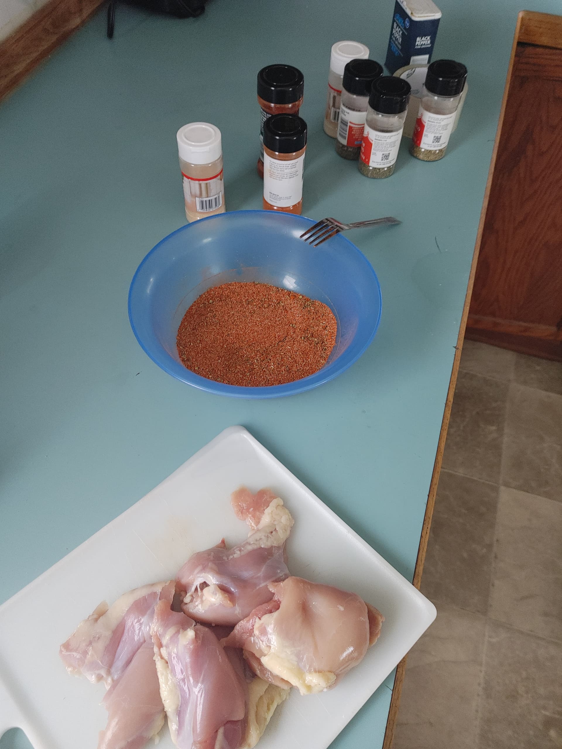 Iâm about to drop a third generation blackened seasoning mixture on you. As far as I know this originally came from my grandmother then to my dad and then to me. The way to properly cook blackened is you get all your seasonings together, you bathe whatever meat you were trying to blacken in ghee, and then you proceed to coat the meat with the spices.