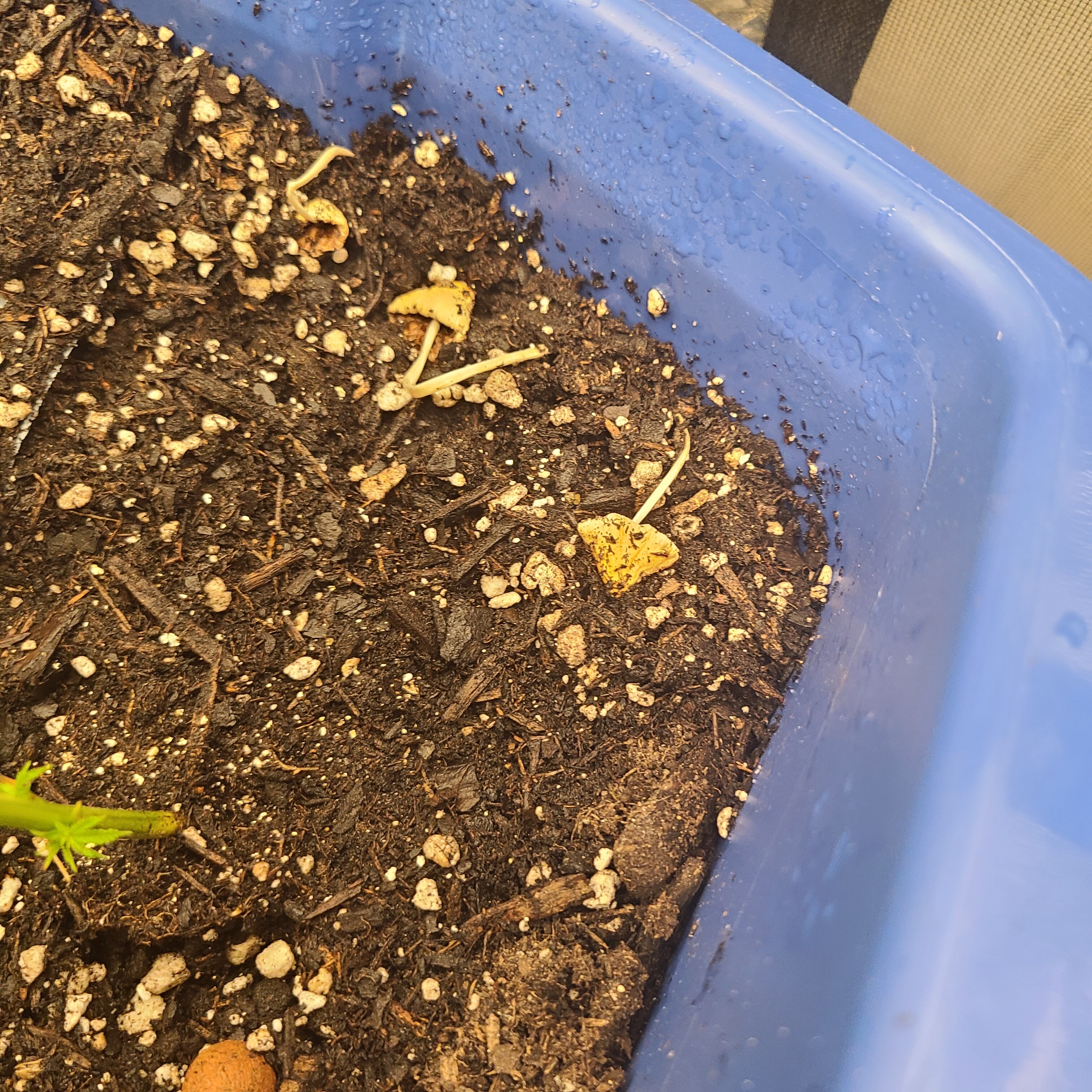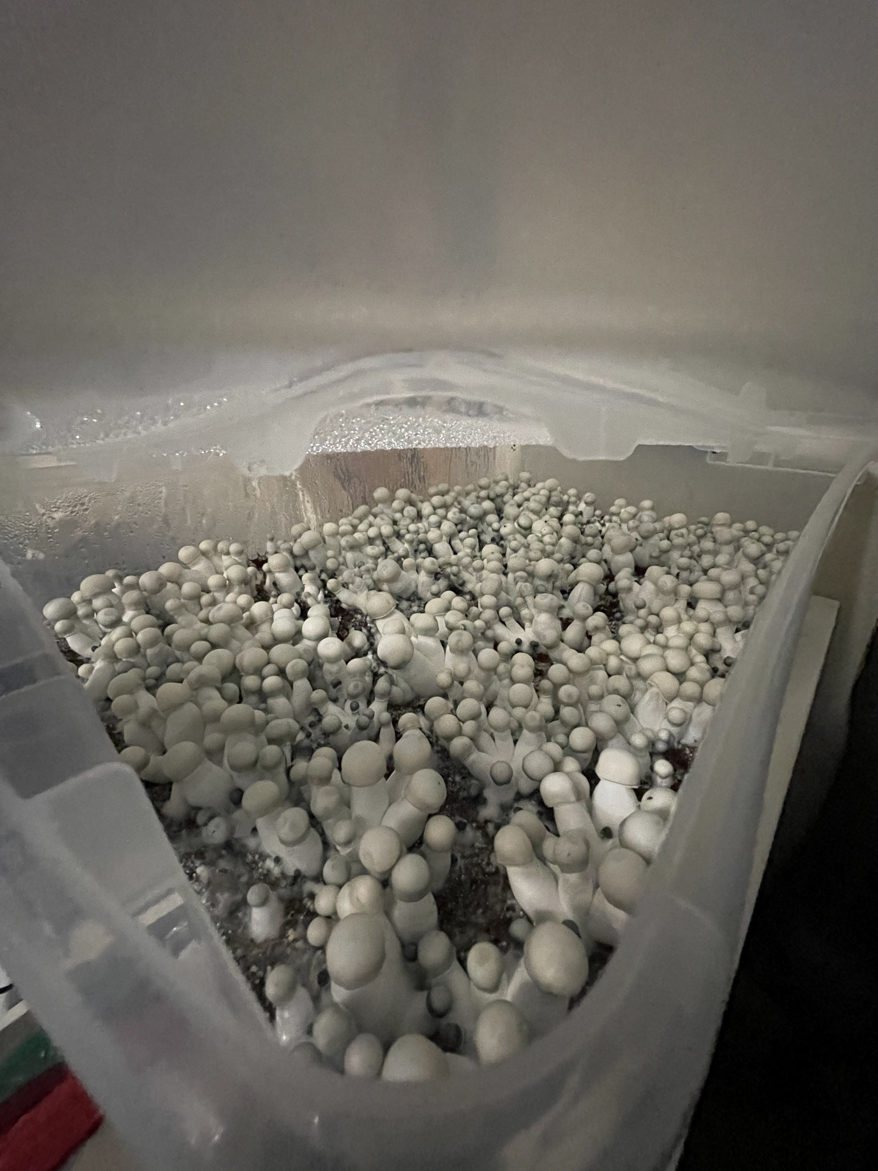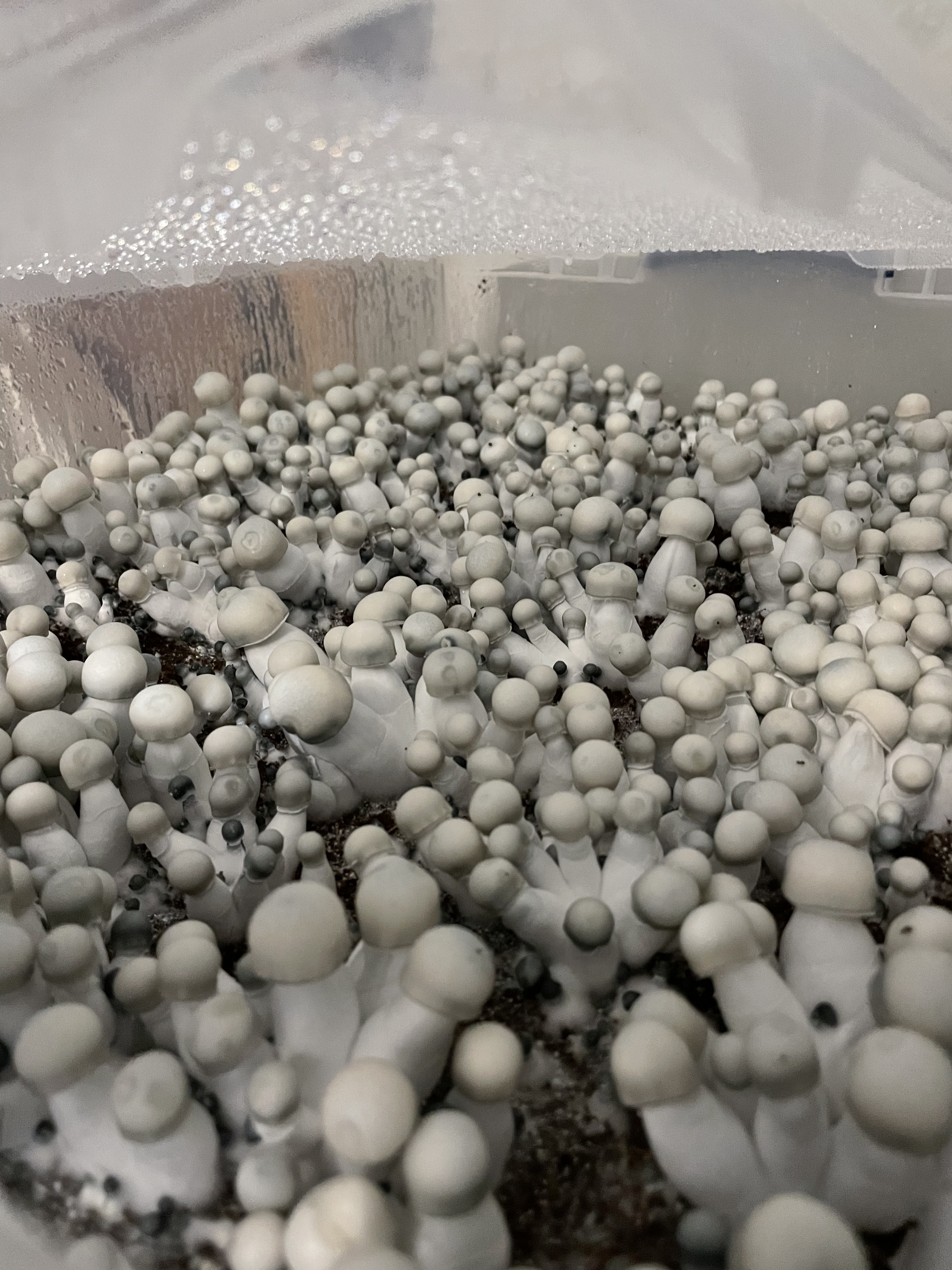 Hoping someone can chime in so one of my grow tubs has a bunch of mushrooms growing some dry and dead others just breaking the surface.