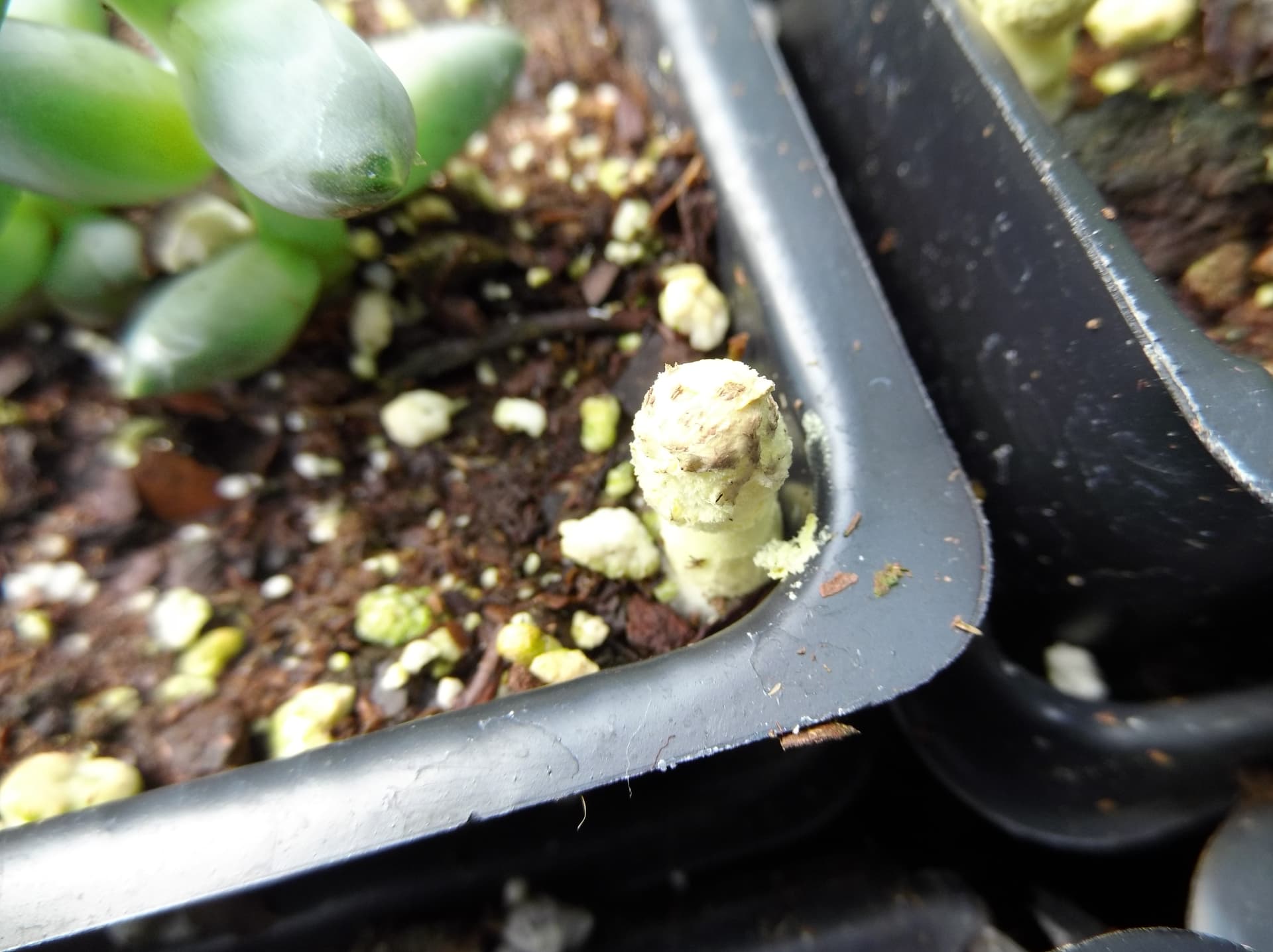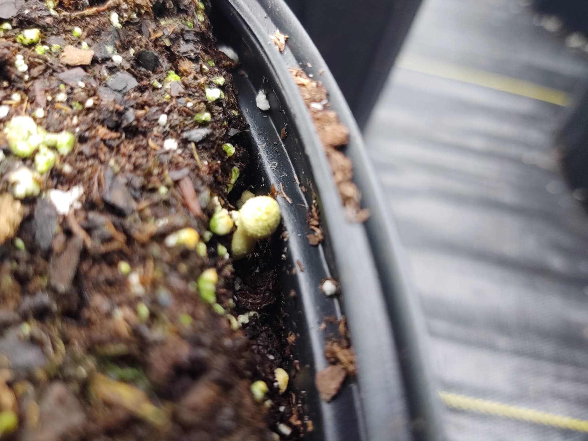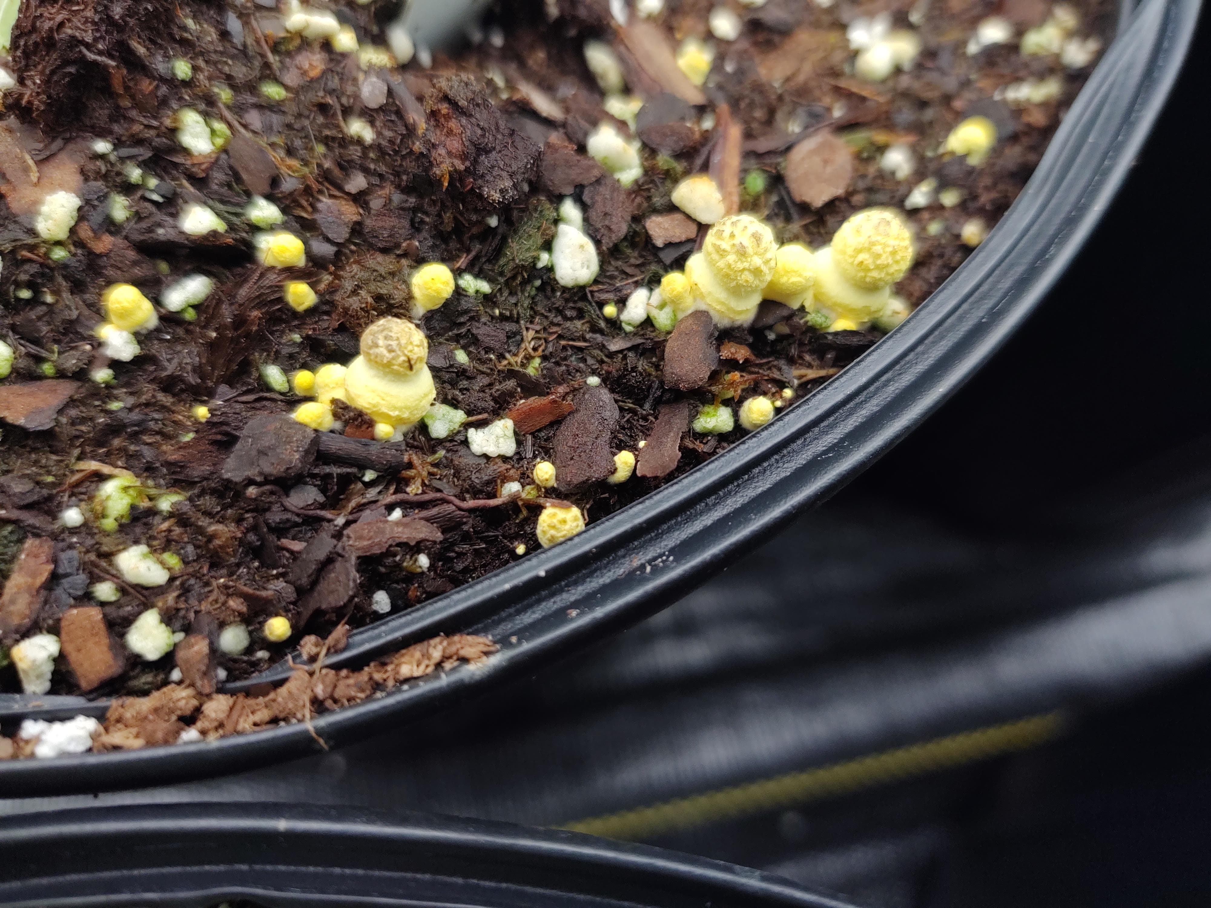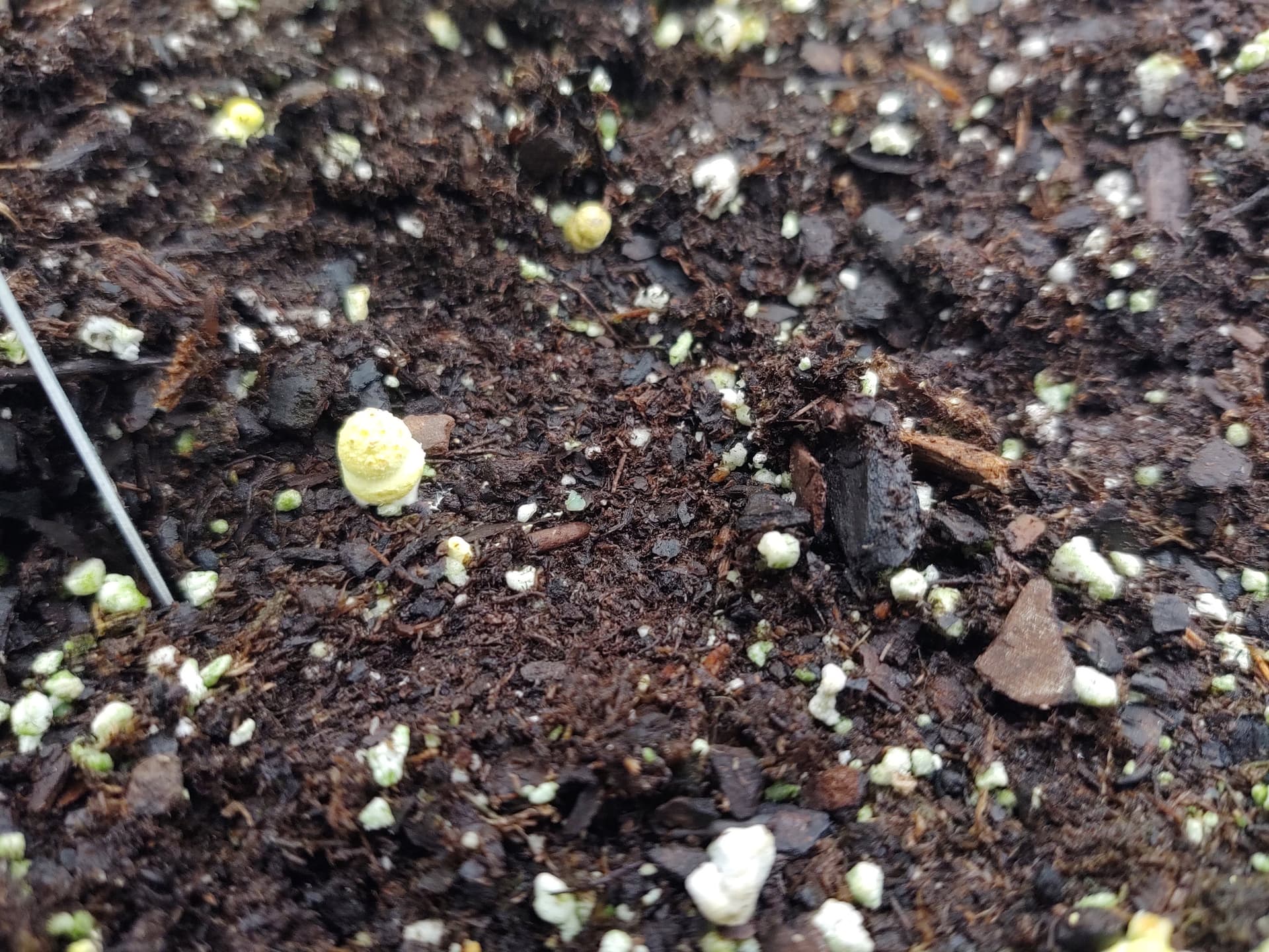 Fruit bodies in the soil can be a sign of too much moisture but it’s also a good sign you have a strong mycelial colony in your soil.
