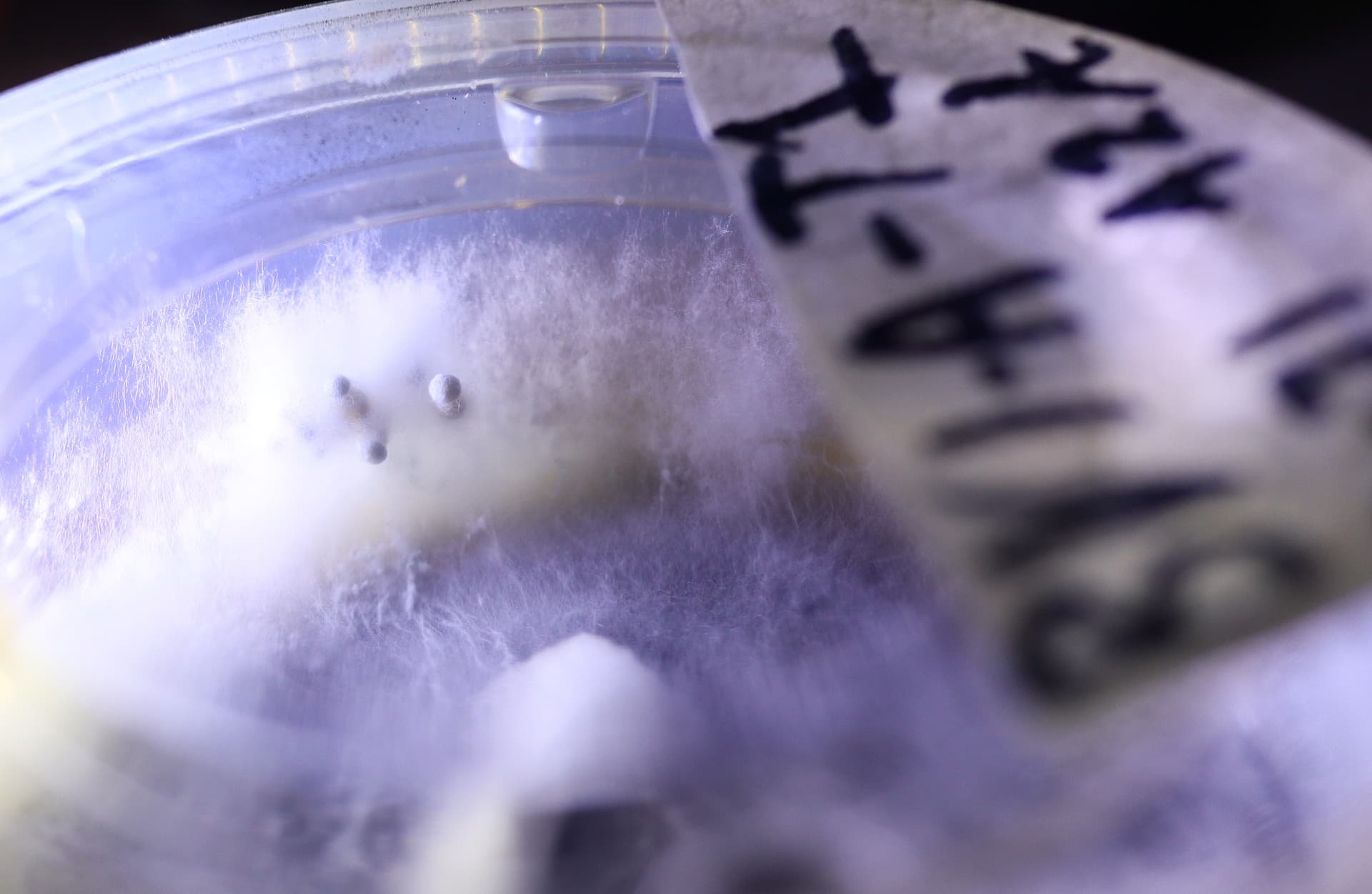 It was a culture yesterday, now it’s both a culture and fruit pic. Pan cyan BVI culture on AC/MEA agar, showing pins 10 days after first transfer from MS germ plate.