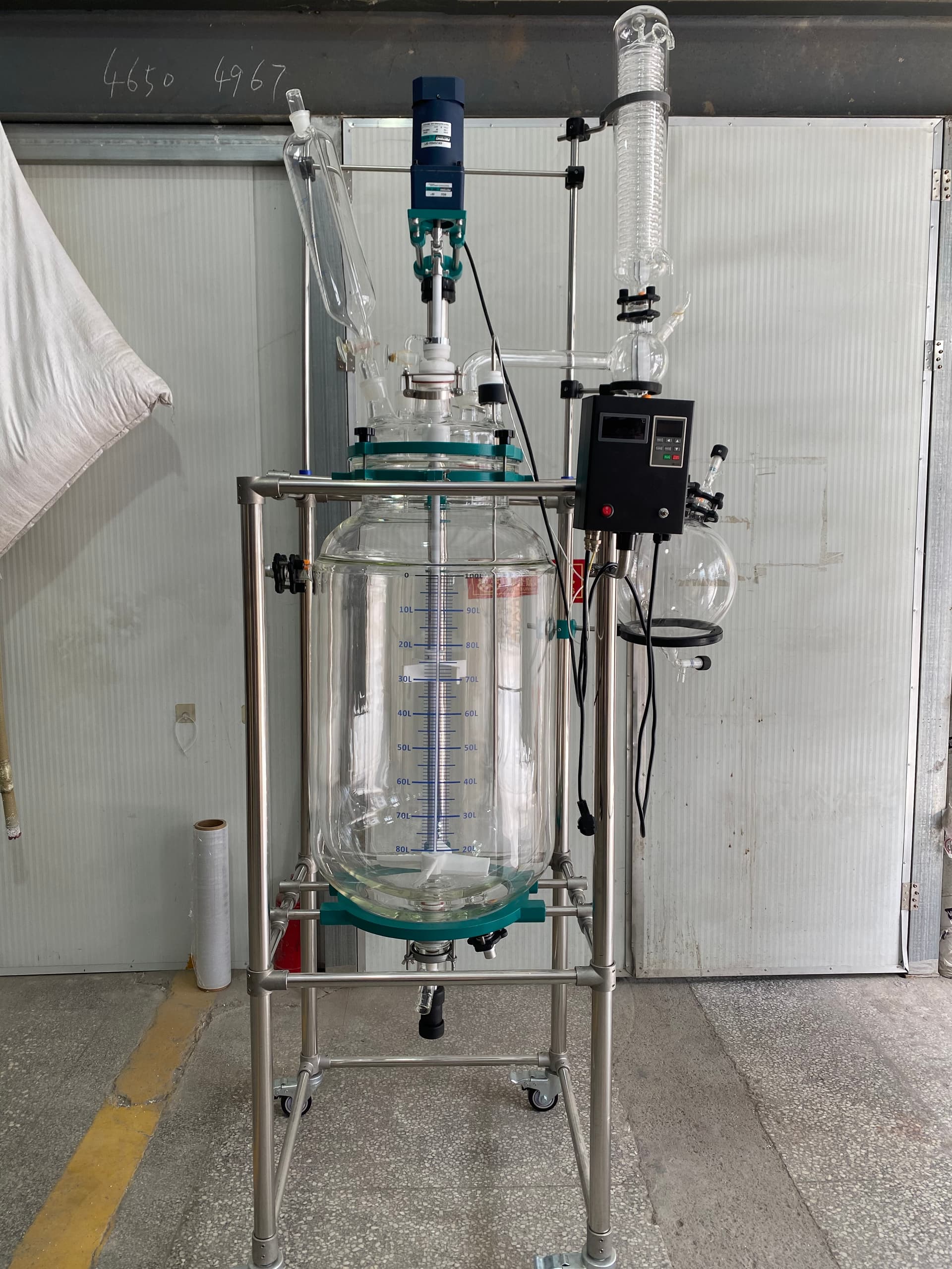 Description:100L glass reactor,When a heating/cooling circulator is used, the temperature inside the container can be controlled gently and accurately by circulating the hydrothermal fluid in the jacket. Accept customization for your needs