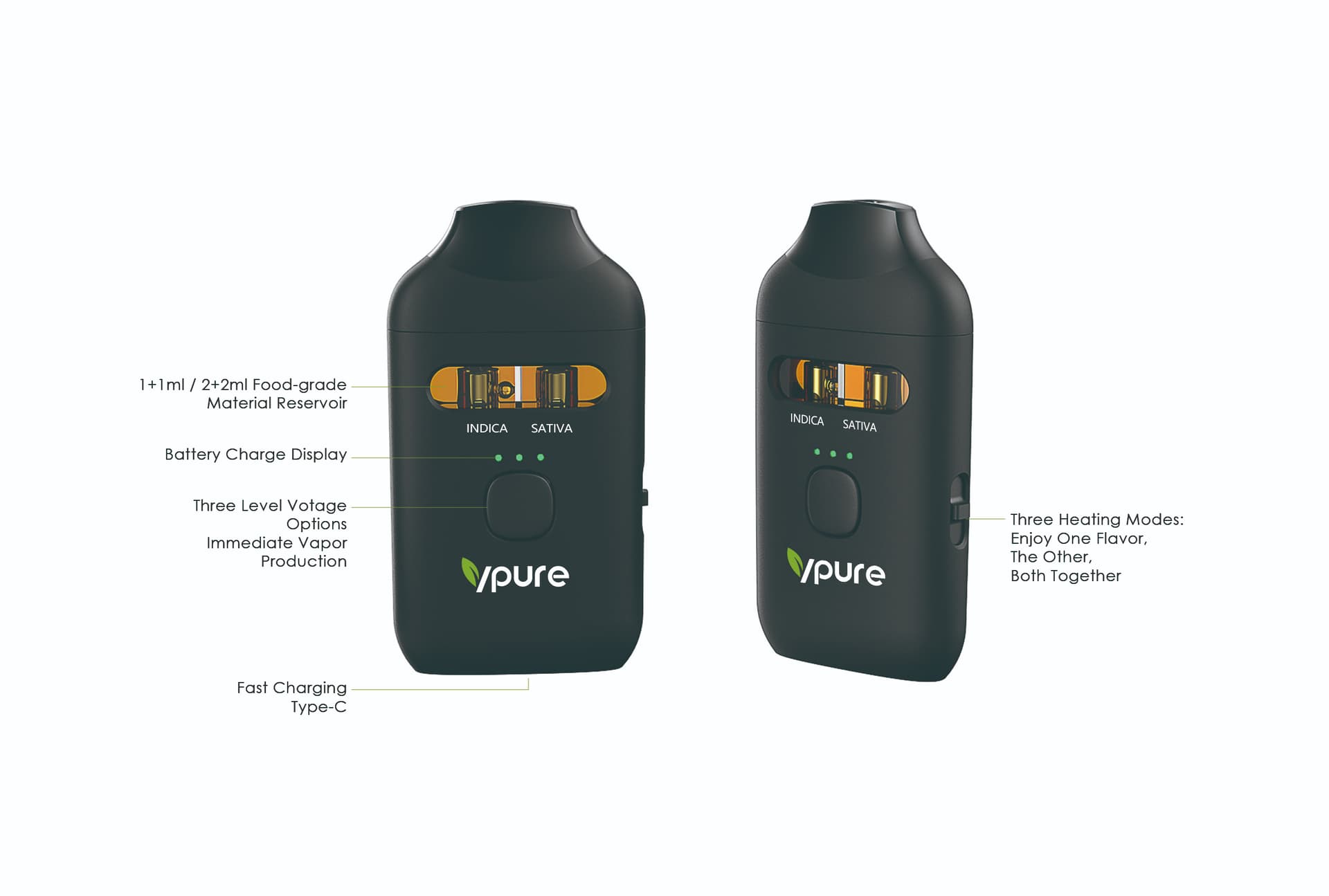 You can choose to vape which tank(flavor) or vape both together through the side switch. The product has three-level battery charge indication and three-level voltage adjustment functions.