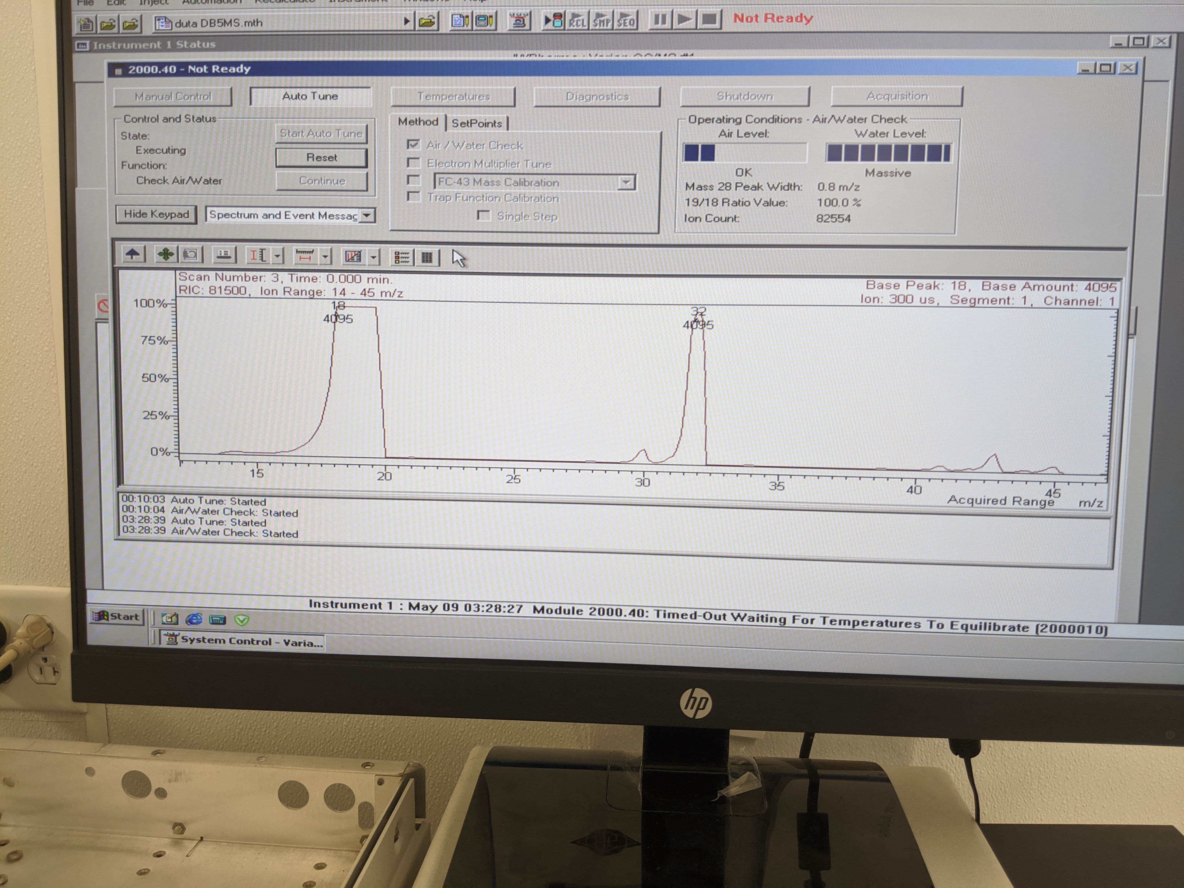 Spent most of the day checking for leaks and baking shit out, still showing too much water. Looks like I’m going to have to disassemble the trap to get it clean. Been able to go through most of the calibration successfully but there’s just way too much noise. Here’s what I’m seeing with just carrier gas:
