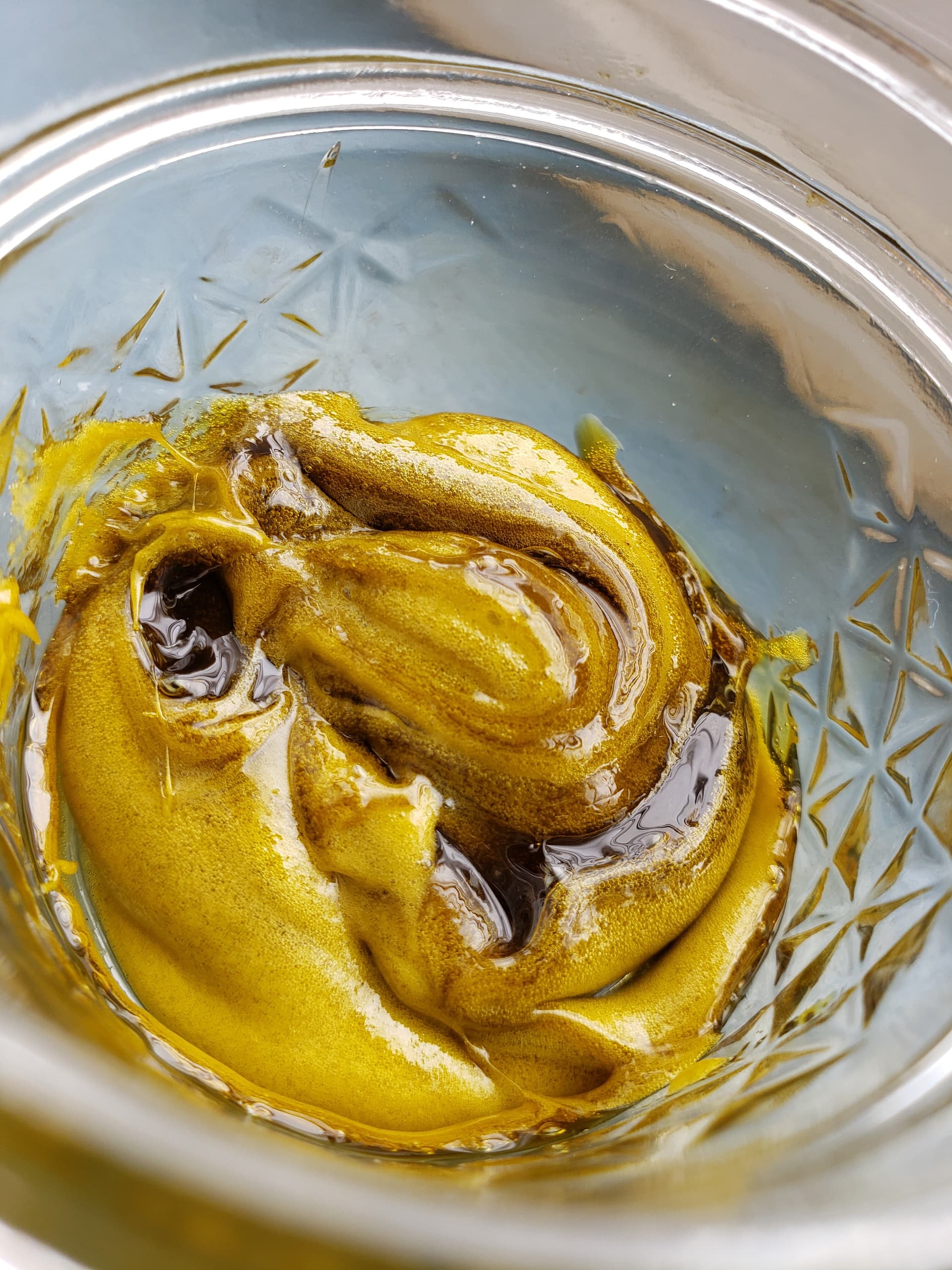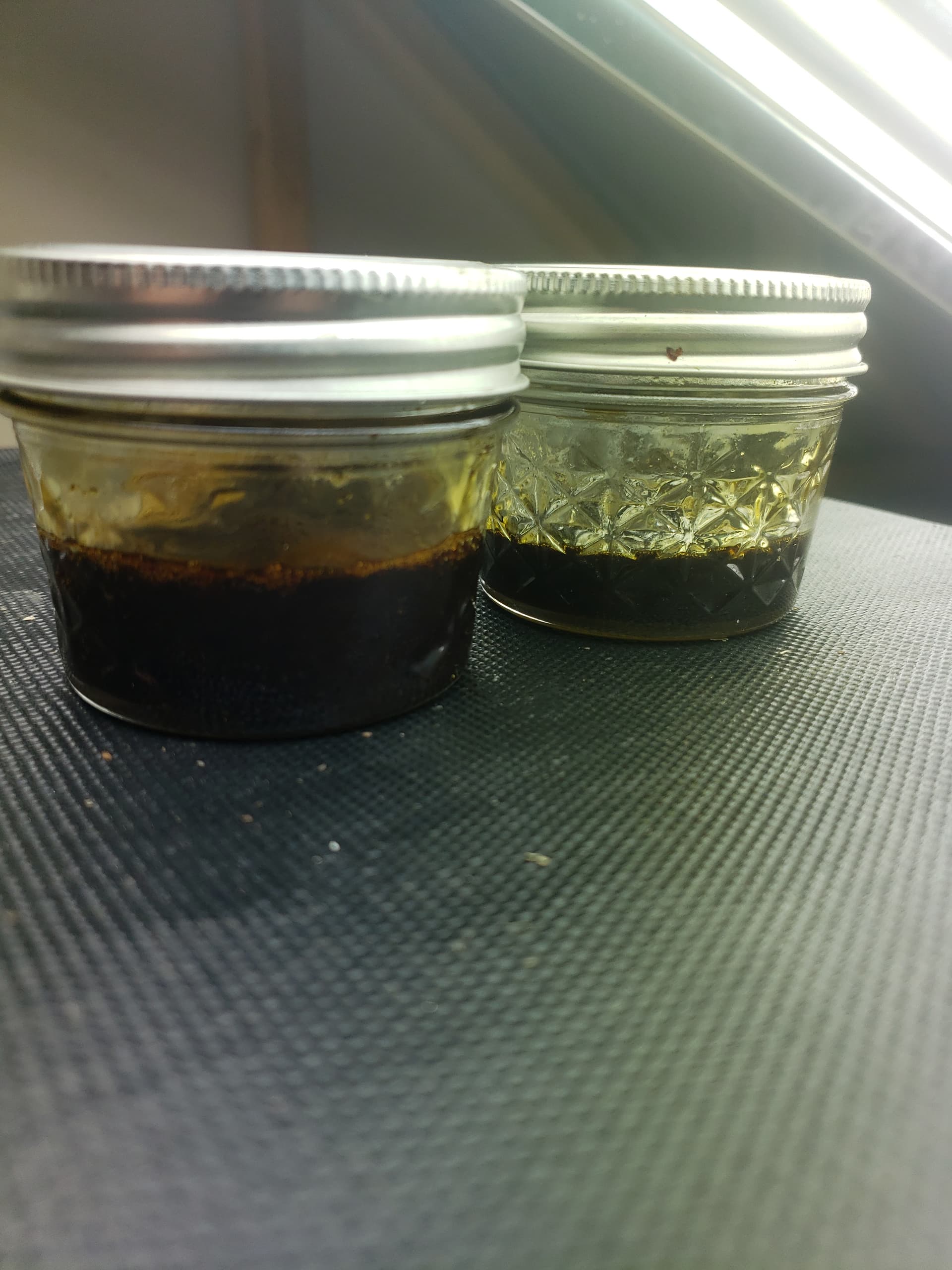 I believe that was my starting material right there. Was a super nice smoke, regardless! But as soon as the decarb happened it got very dark even though it was refined and I got the large majority of plant material out of it on a really fresh batch.