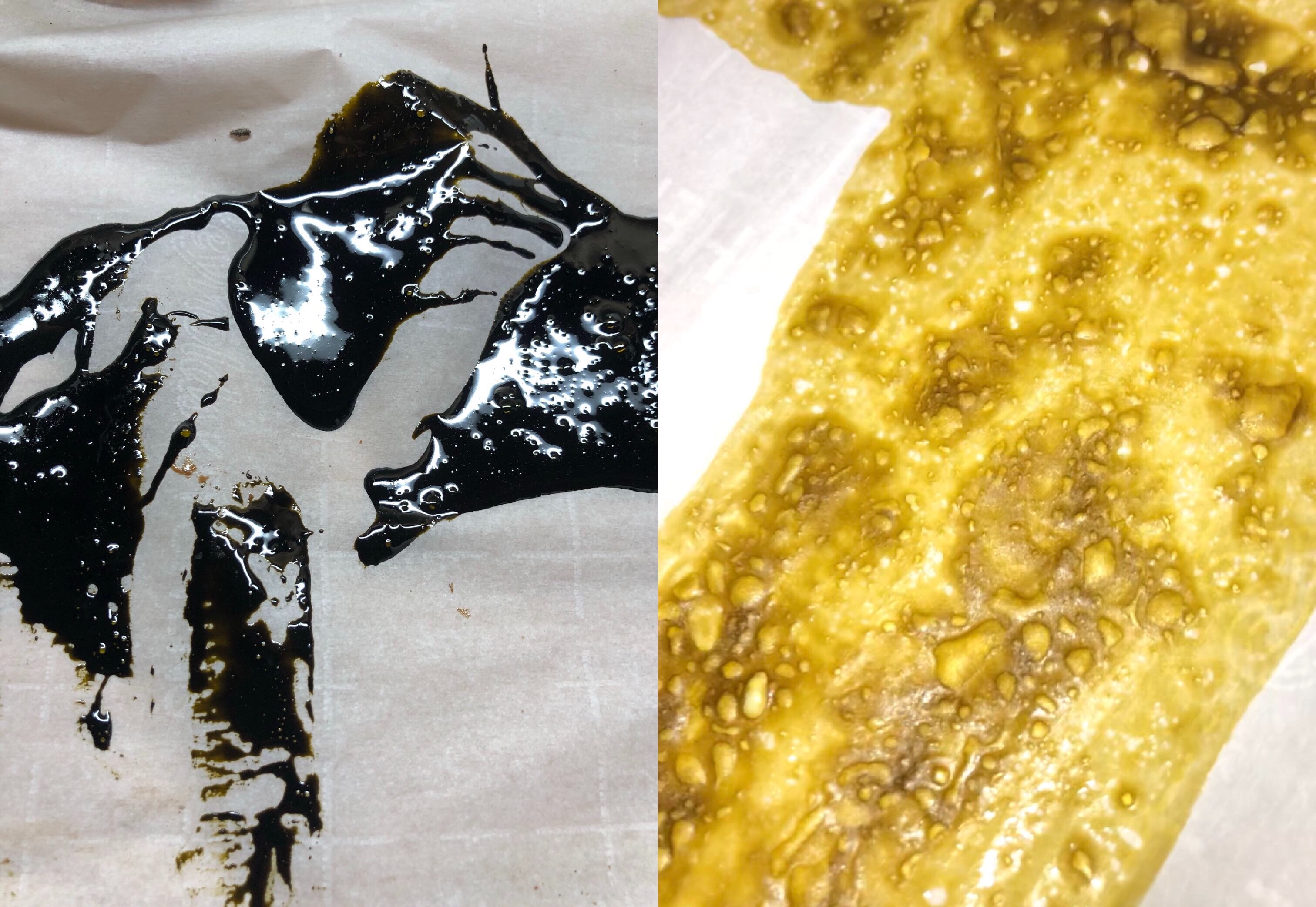 on the left is material that has already been run through solvent once. then stored for about 6 months
