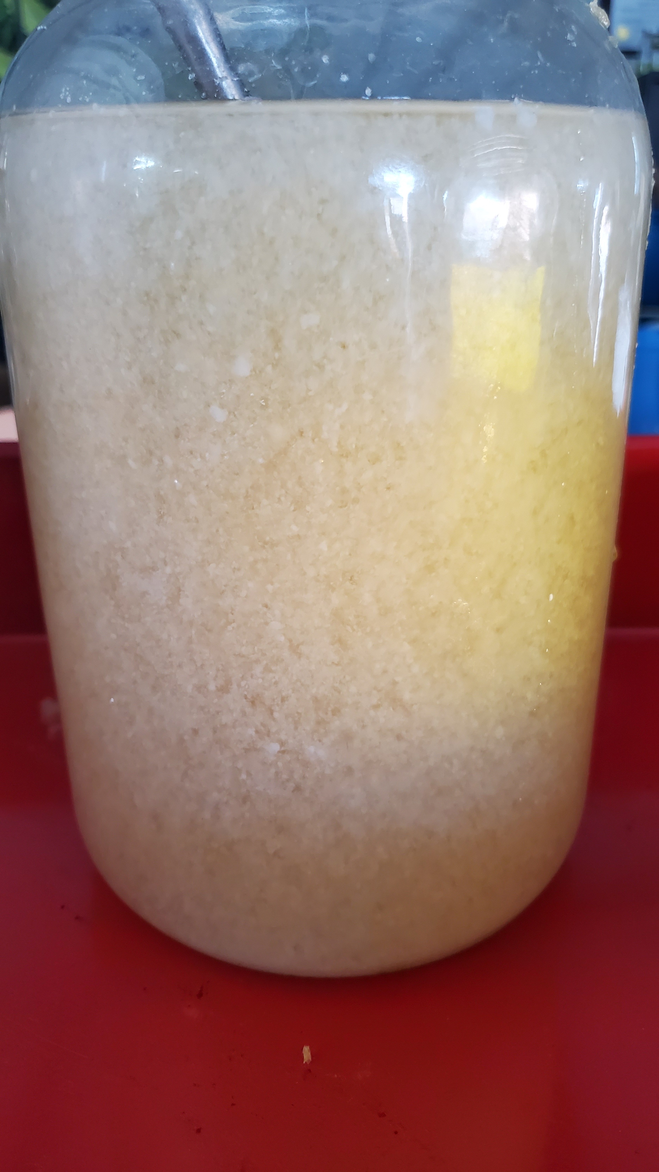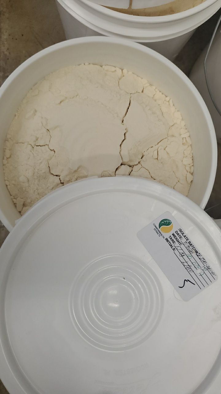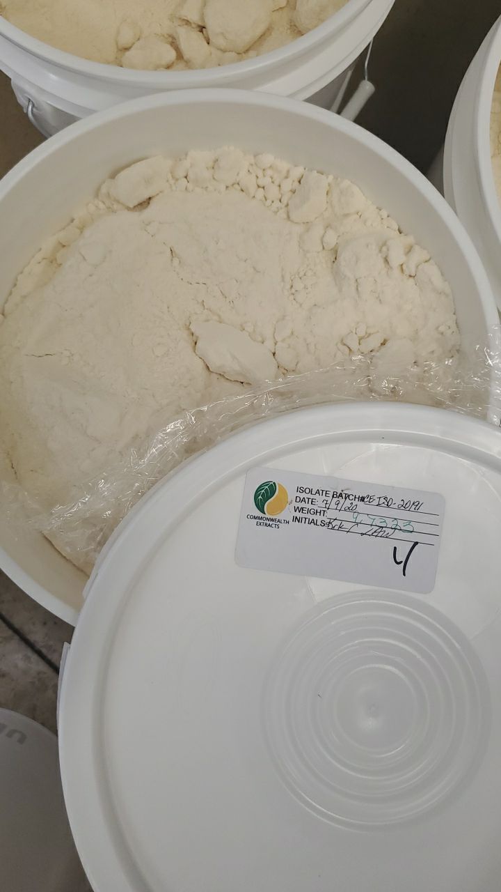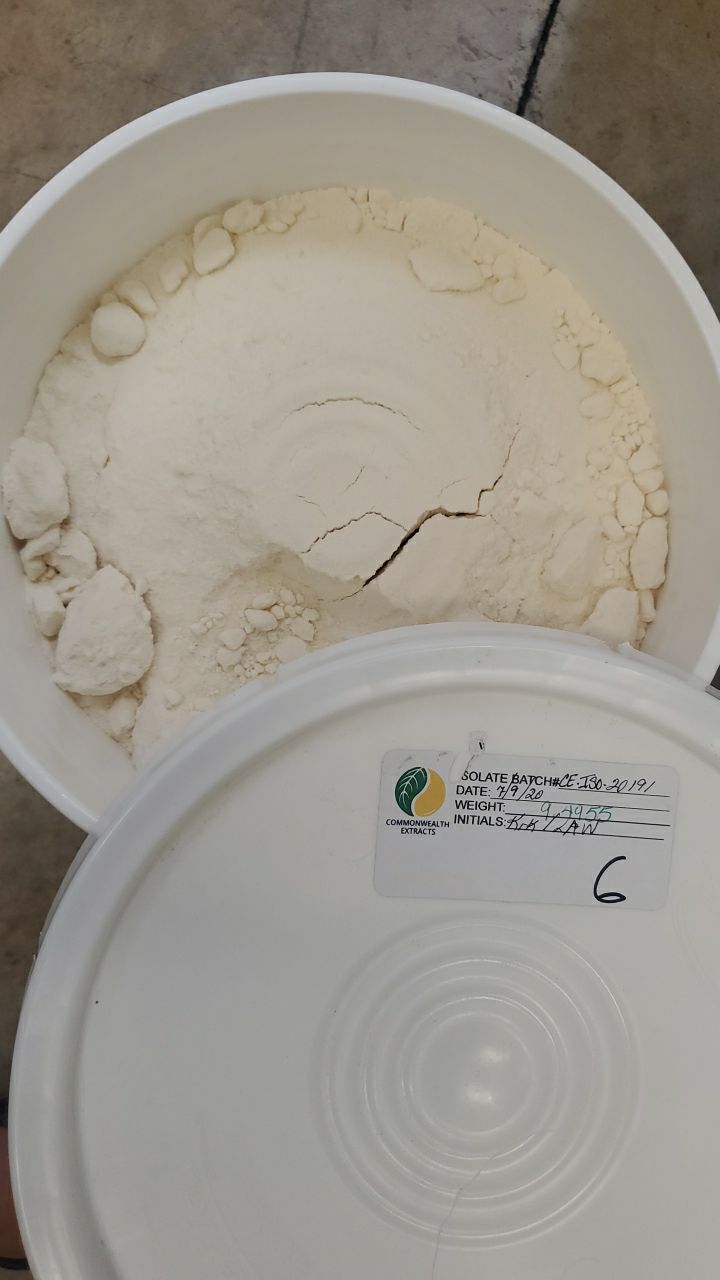 Baseball size chunk of isolate dissolved in Methanol. All the white particles are lipids. Methanol is lipophilic so this is somewhat of a room temperature winterization.