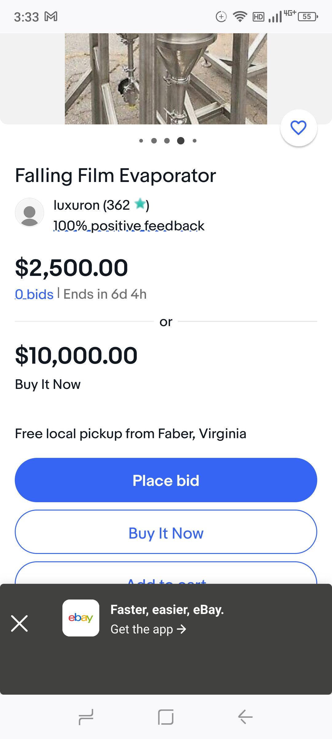 Can load on semi and ship anywhere in the world. $180,000 new, opening bid $2,500, totally refurbished with new composite PTFE/Viton gaskets. NO RESERVE.