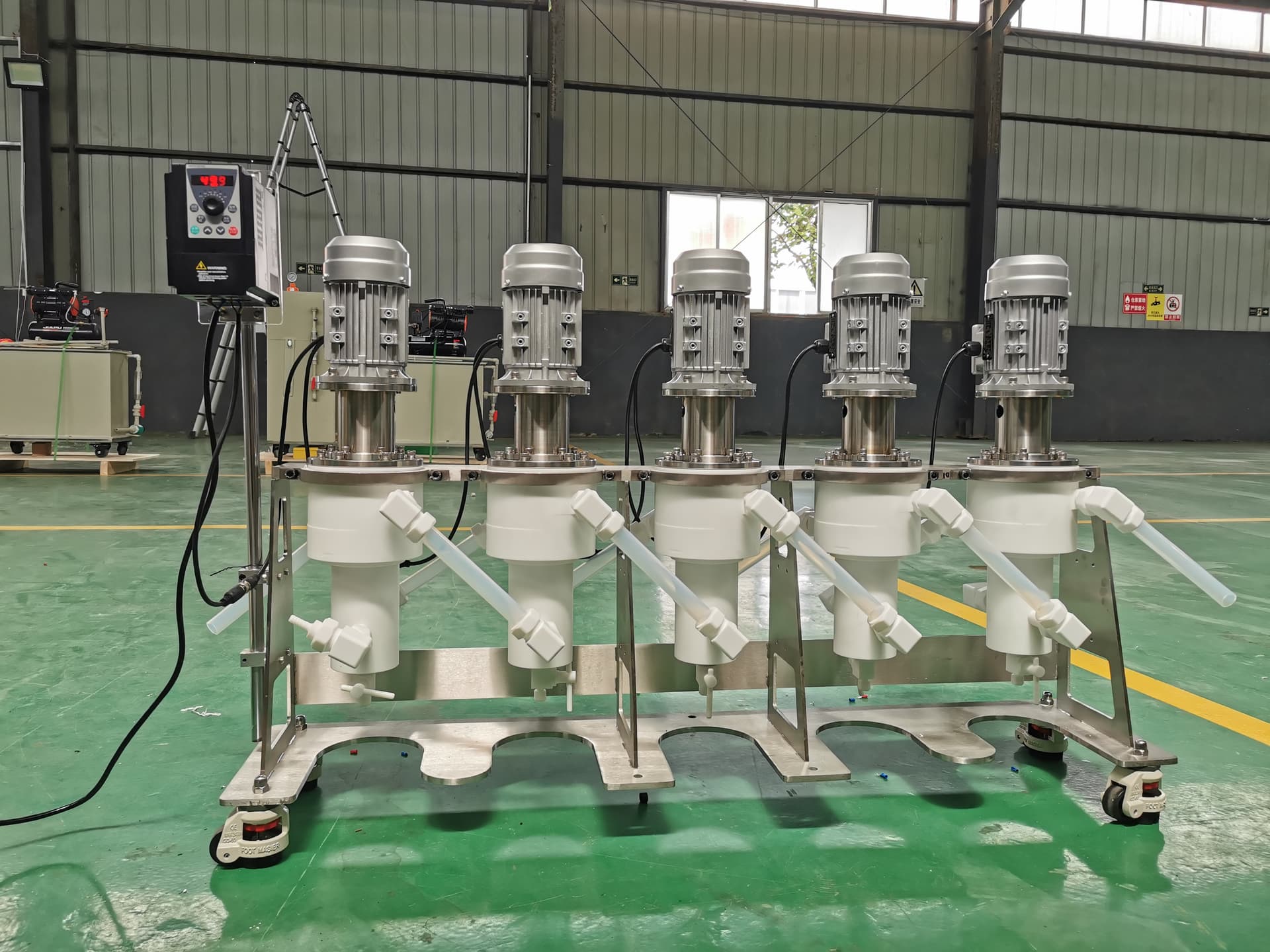 The light and heavy phase solutions enter the mixing chamber from the light phase inlet and heavy phase inlet in a certain proportion, and the mixing and mass transfer process is quickly completed under the action of the stirring paddle.