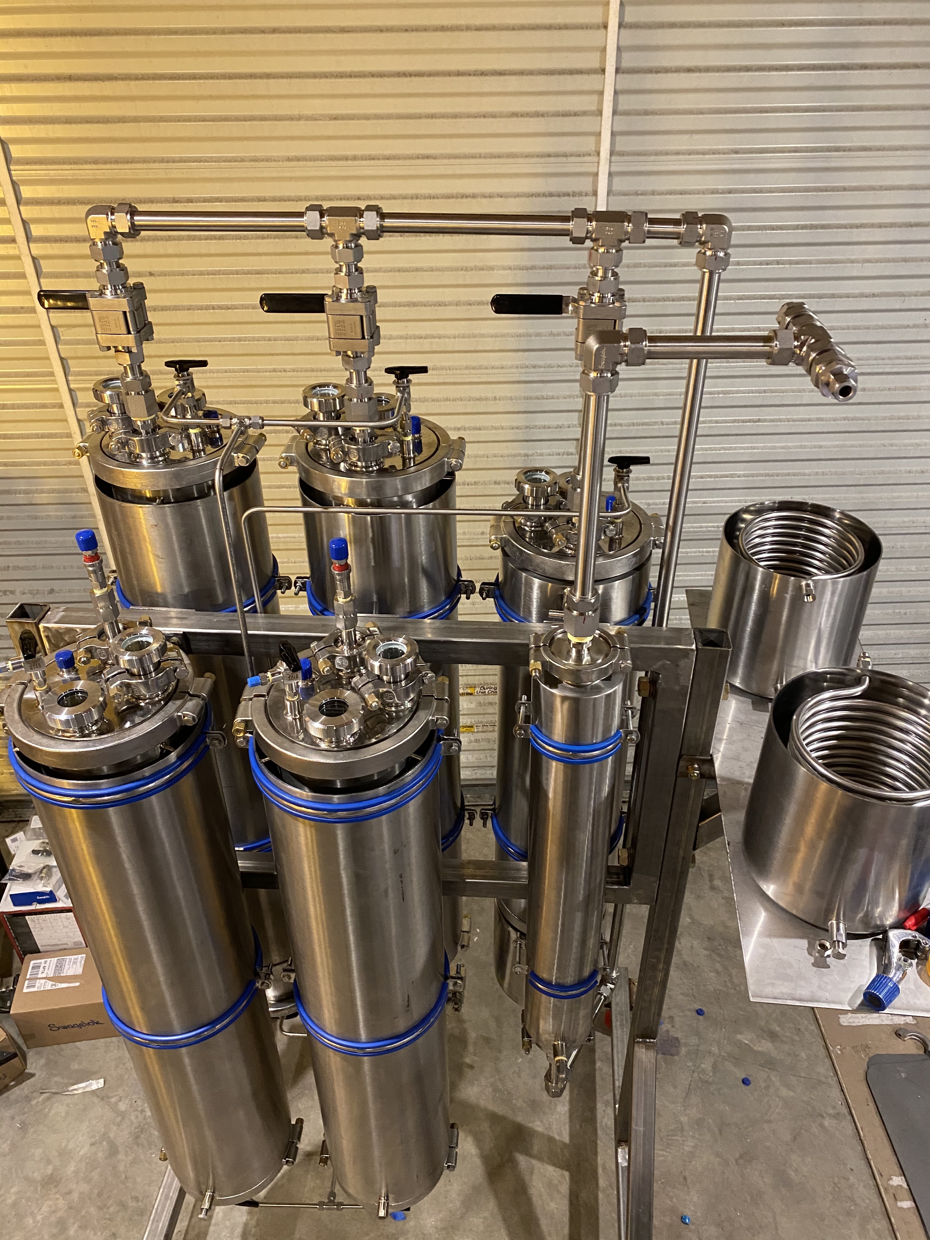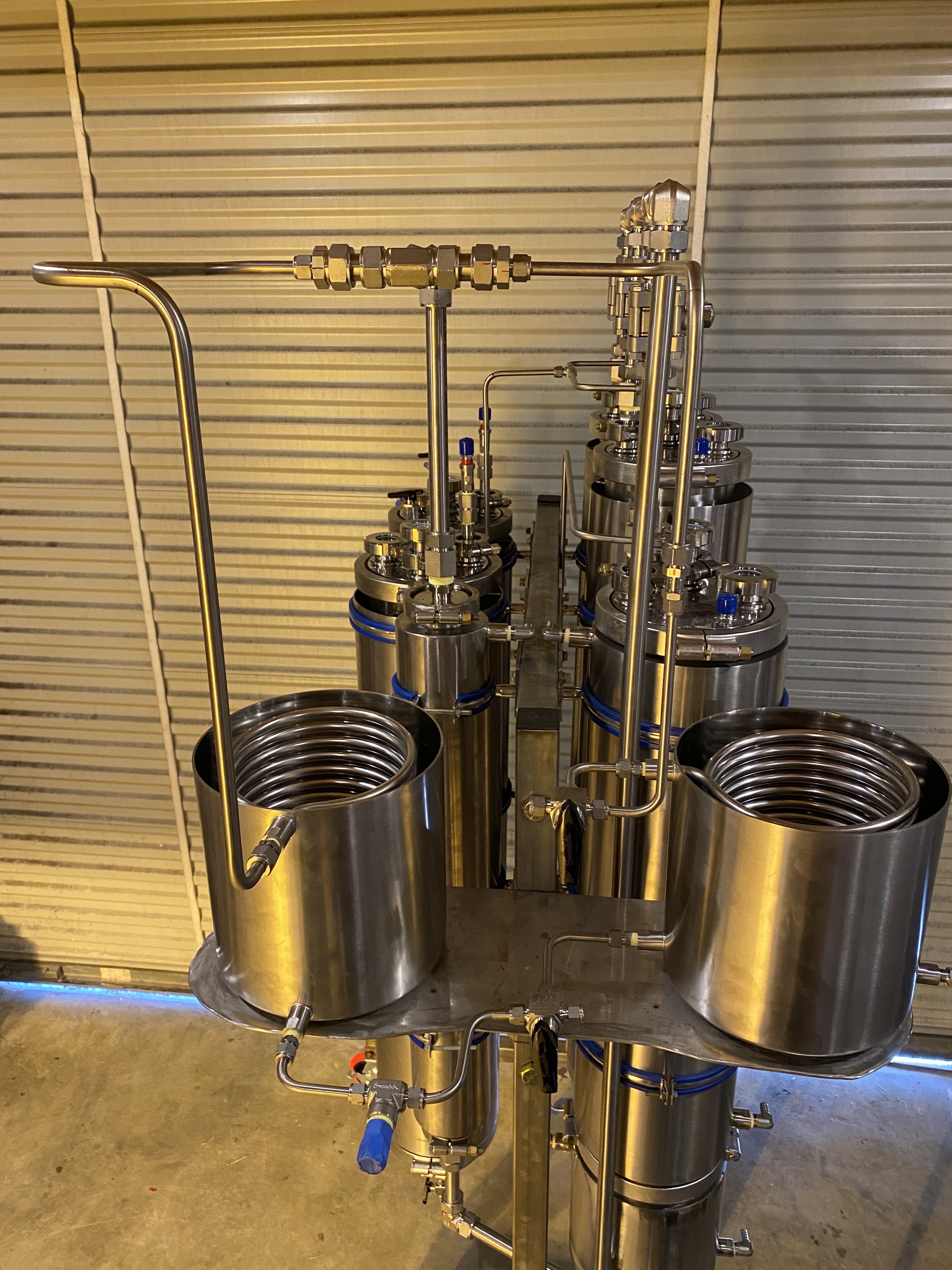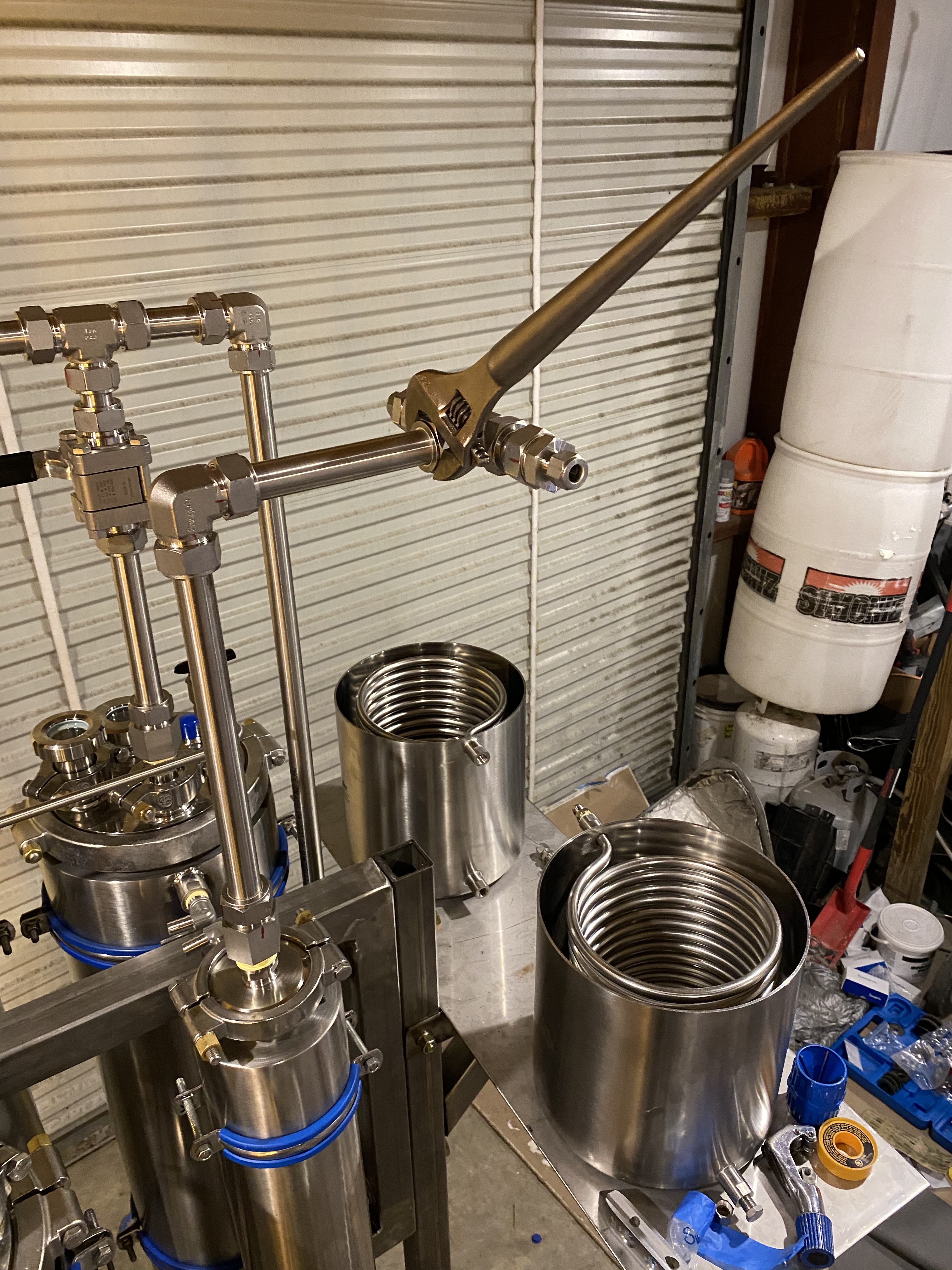 The coils (not the ones in the columns) will be for recovery, and the right side will have 3-way ball valves so I can use that one for injection as well.
