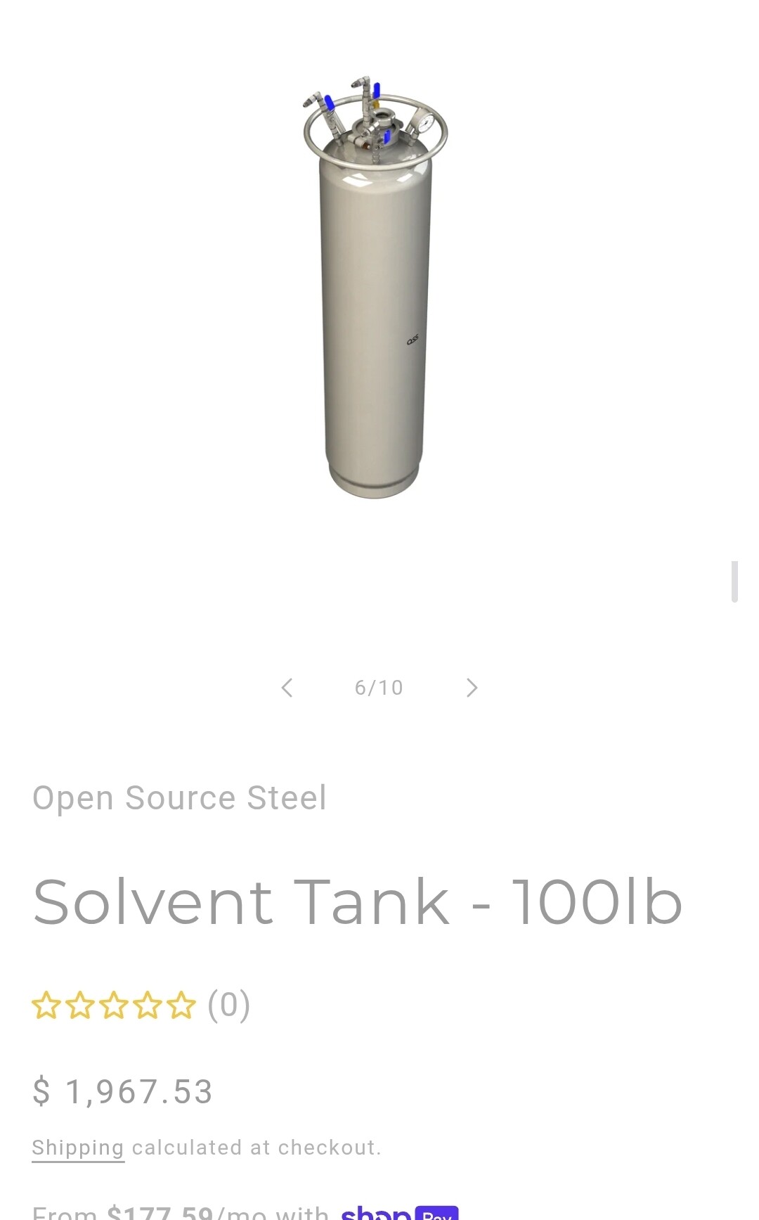 Item Model/Manufacturer: OSS open source steel 100lb solvent tank