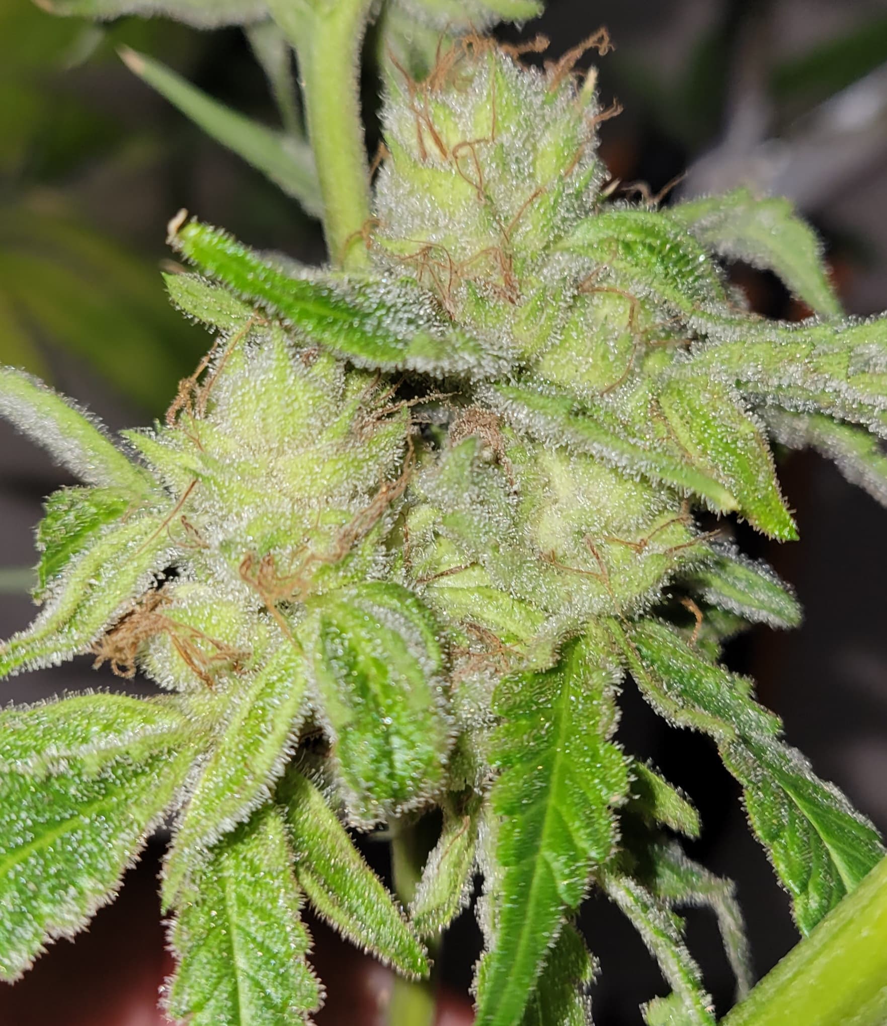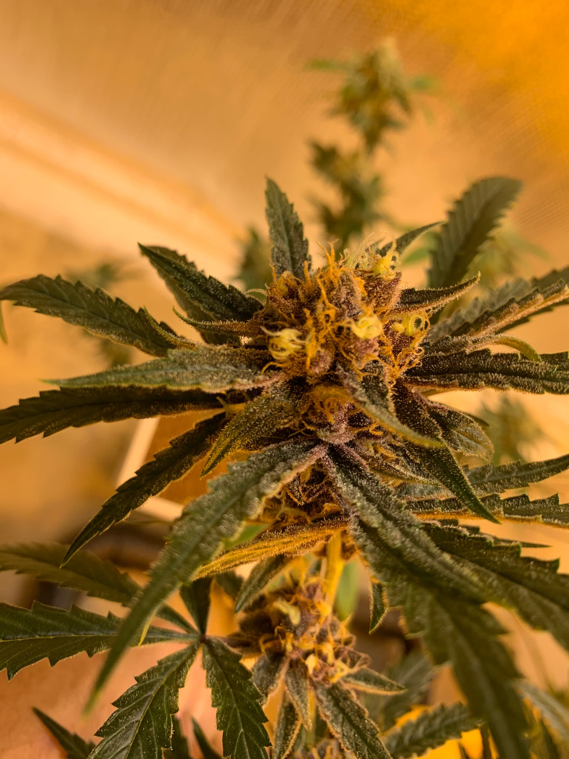 Stoopid Fruits closeup. This is a huge plant that got all wild on me indoors. Stretches like crazy, but man…she smells like rotten fruit and cat piss. Hard to describe. Will be delicious nonetheless.