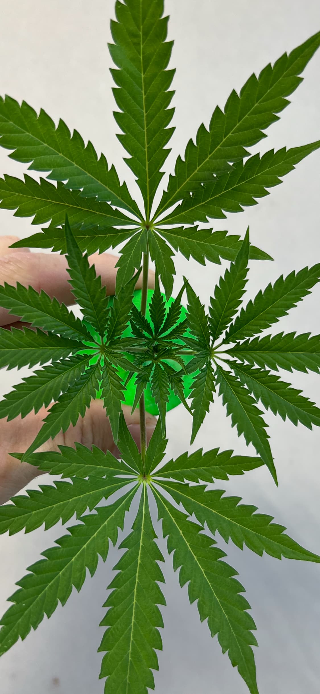This seedling from a pack of Plat-Chem X Mean Mug is seriously impressing me so far, love the structure she vegges quick and stem rub is A+++ cant wait to flower her out….