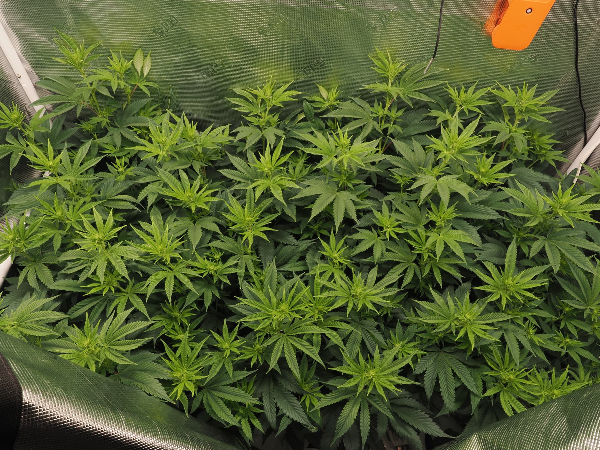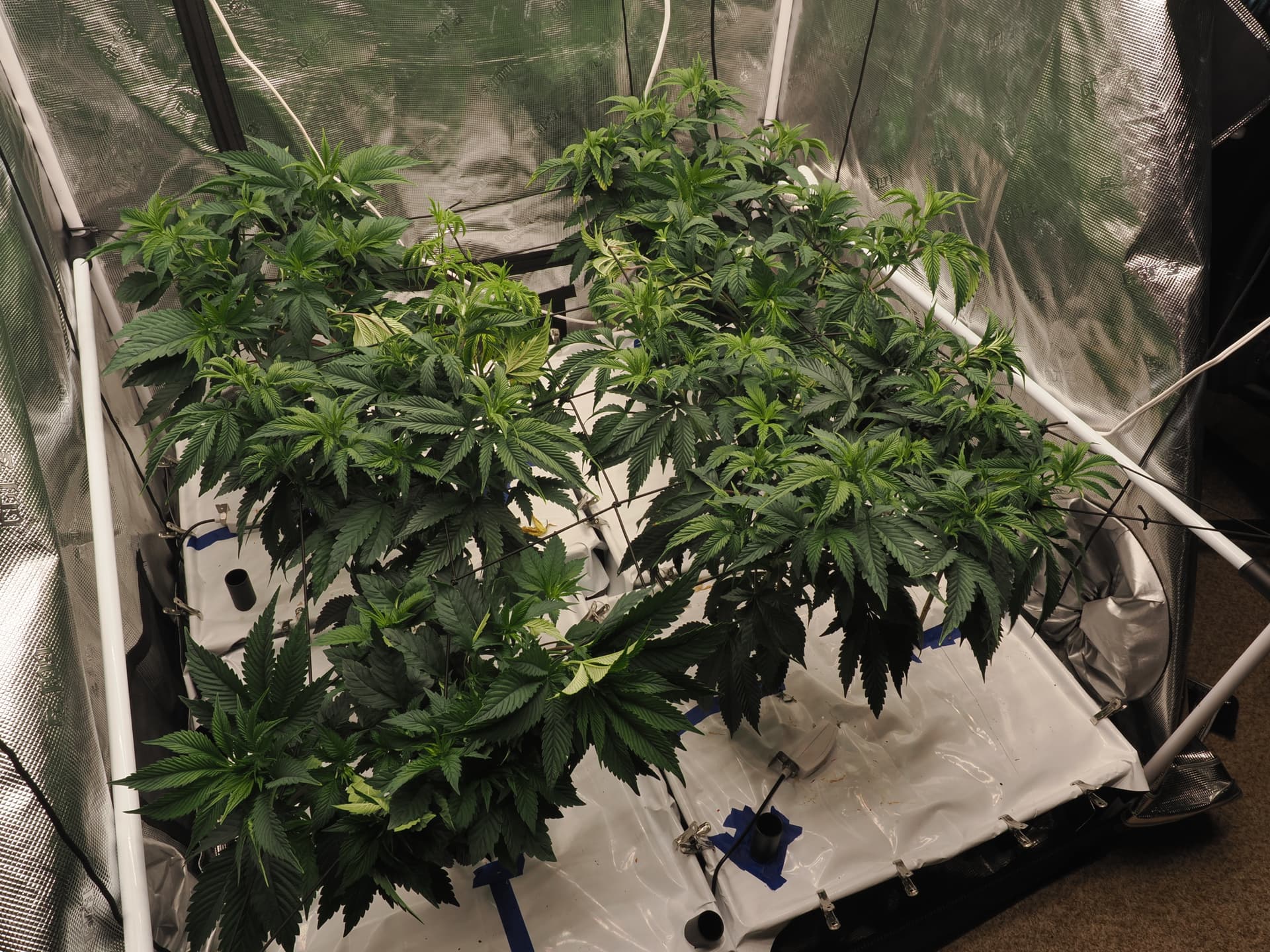 Running some crazy bitch from csi Humboldt, having to run a scrog net to spread them out. Even after topping twice they wouldn’t spread out. Haven’t started flower on this tent yet