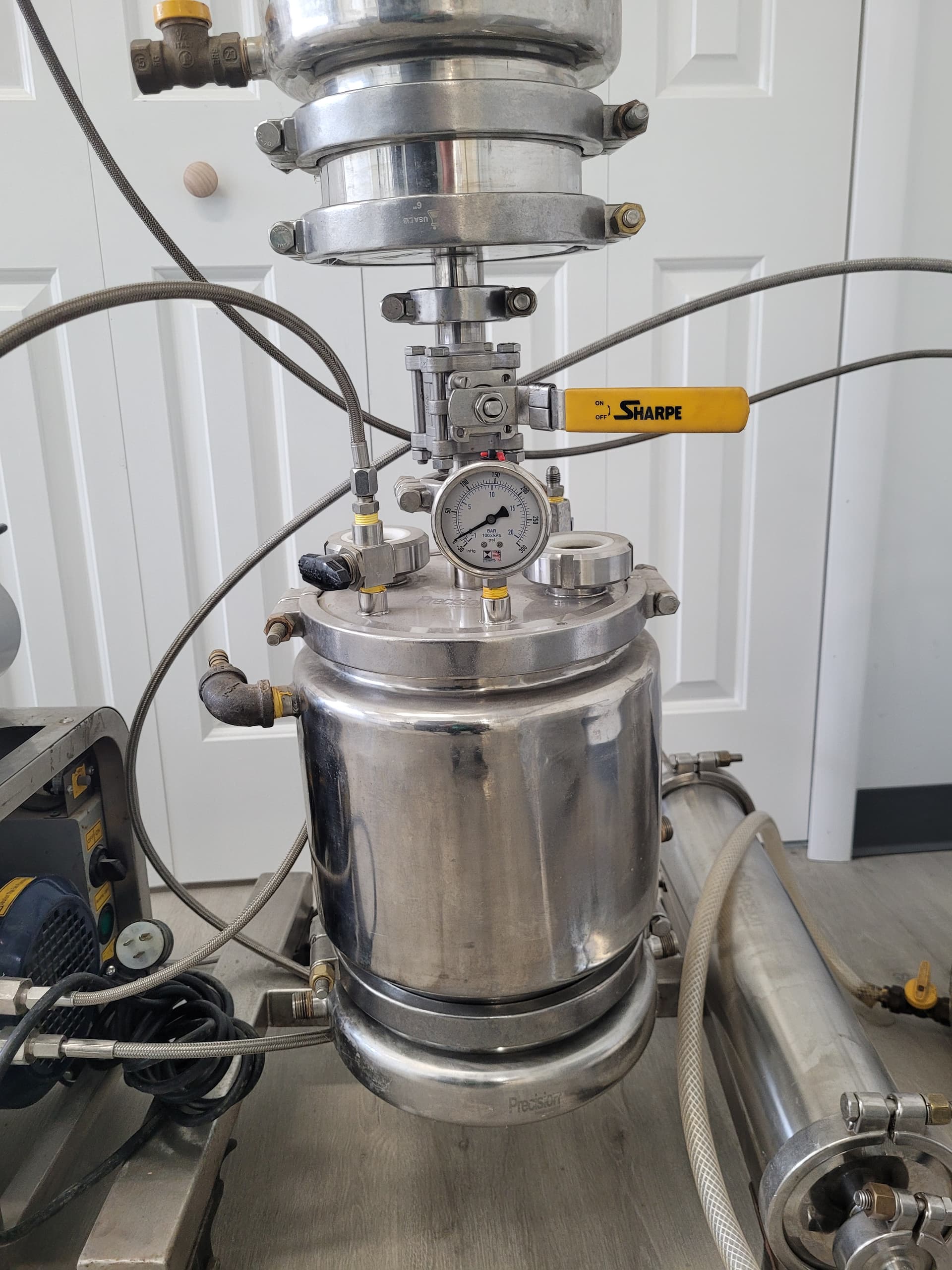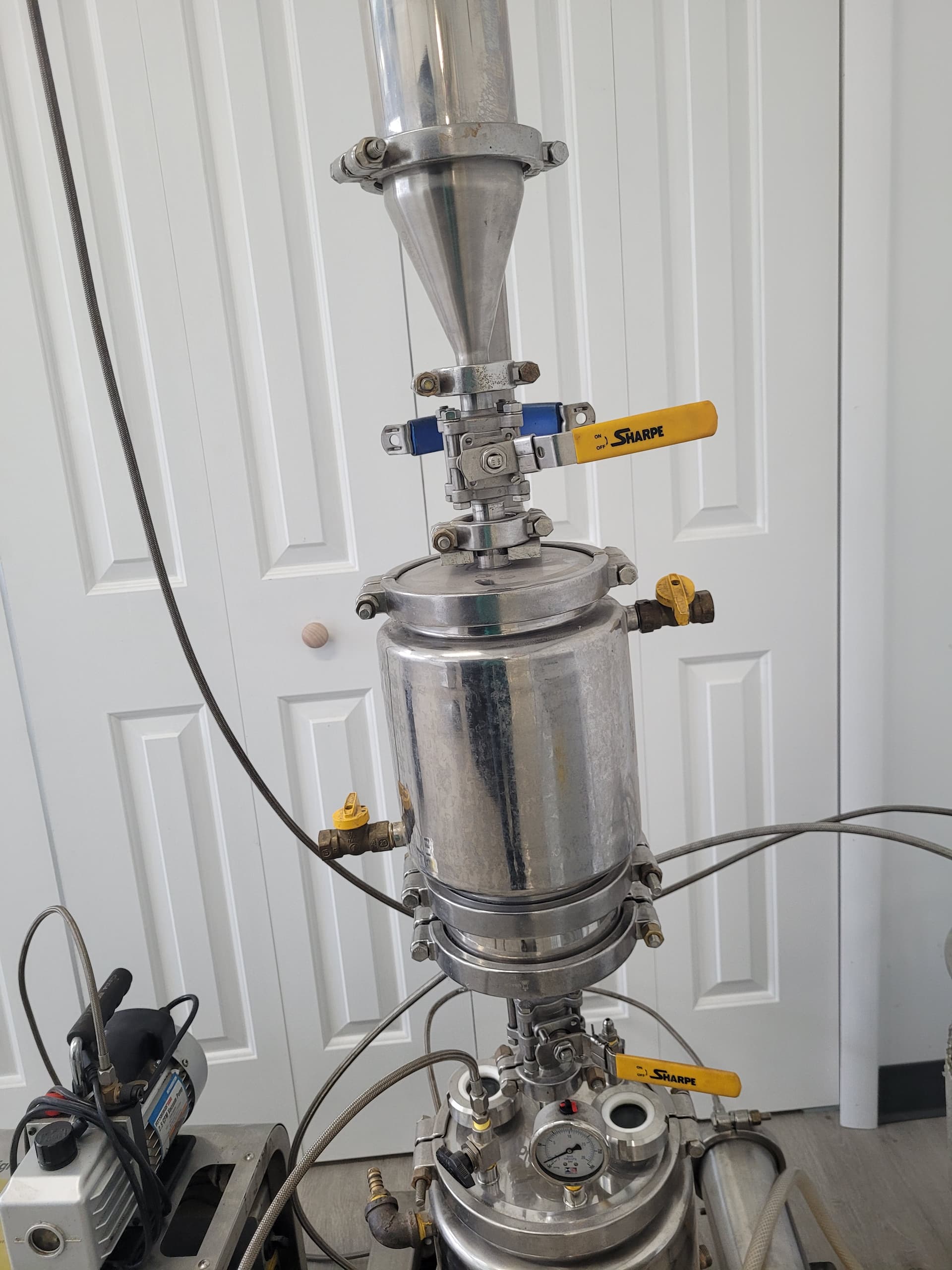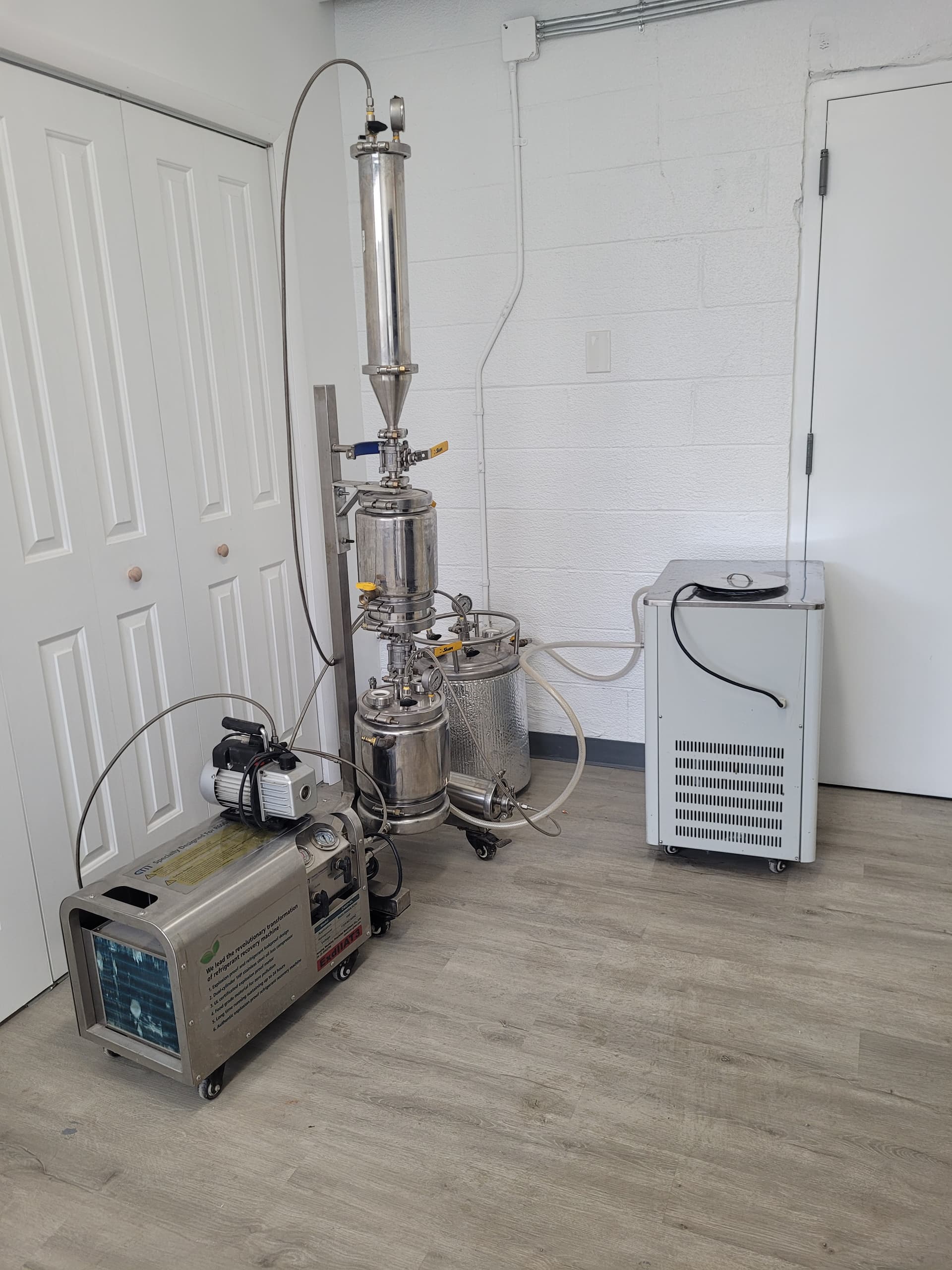 Description: Complete system with extra large solvent tank, 3 4"x18" Columns, 6 " jacketed dewax, 6" open dry-ice dewax, 8" jacketed recovery column with splatter platter, Inline CRC, gas drier column, DLSB 10L/-40 chiller, CMEP with newly rebuilt compressor, small system evacuation vacuum pump, Explosion proof fan. All braided stainless hoses.