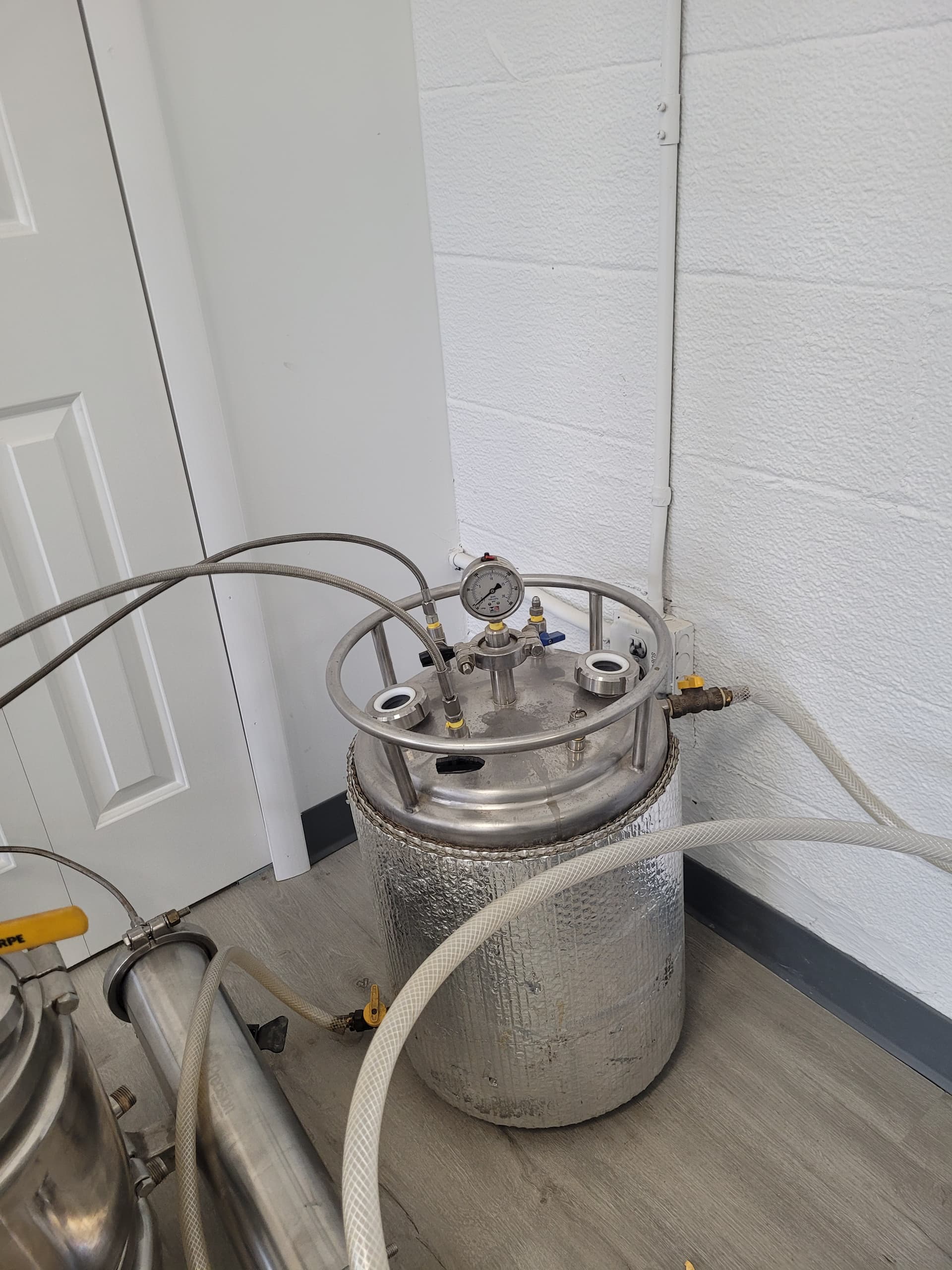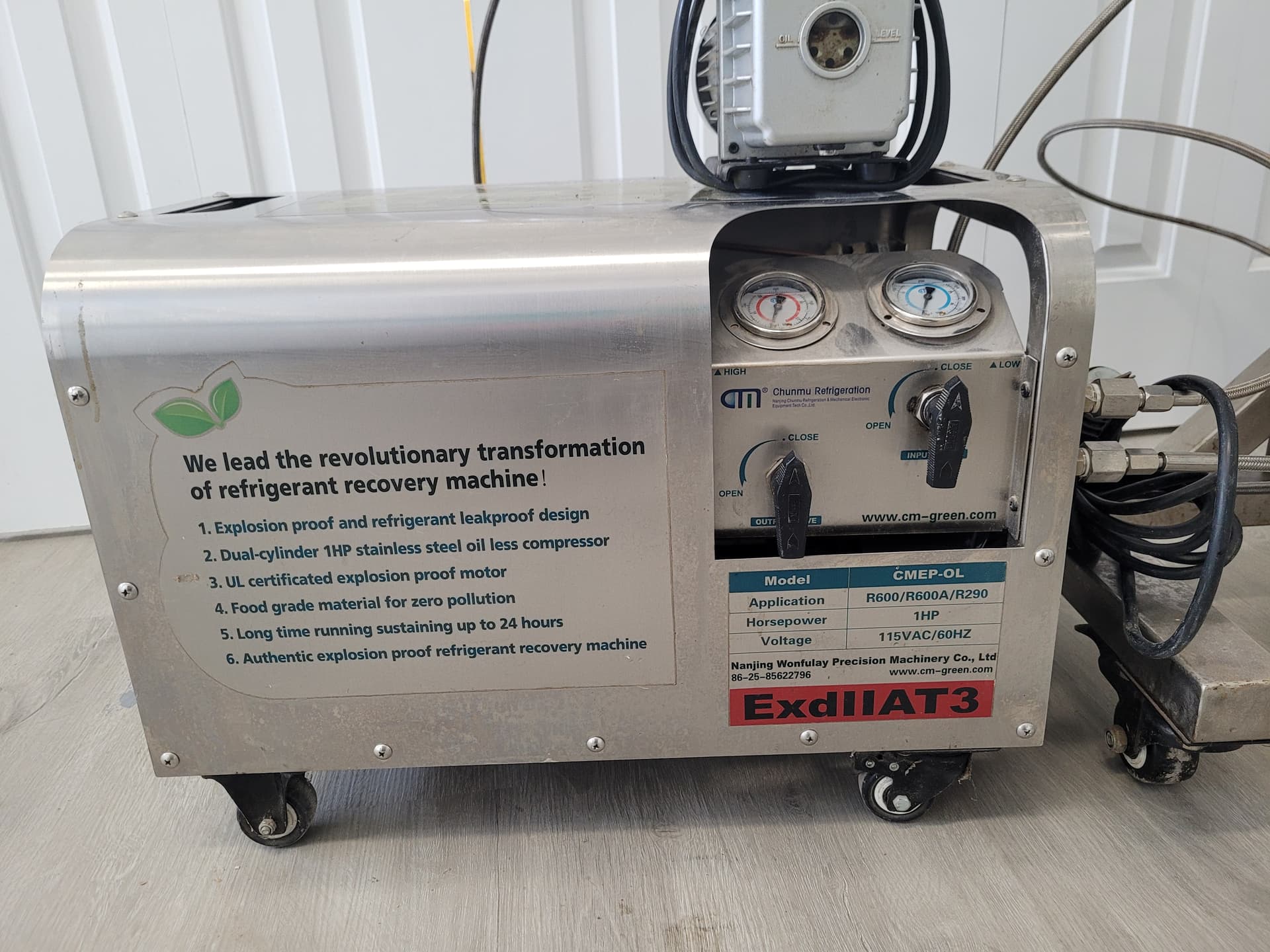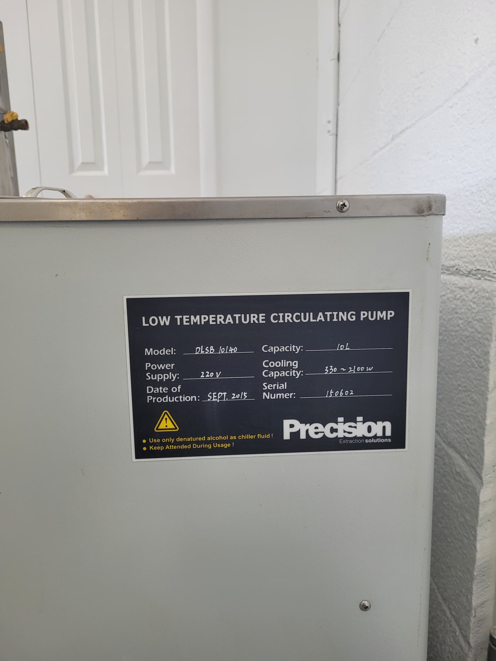 Description: Complete system with extra large solvent tank, 3 4"x18" Columns, 6 " jacketed dewax, 6" open dry-ice dewax, 8" jacketed recovery column with splatter platter, Inline CRC, gas drier column, DLSB 10L/-40 chiller, CMEP with newly rebuilt compressor, small system evacuation vacuum pump, Explosion proof fan. All braided stainless hoses.