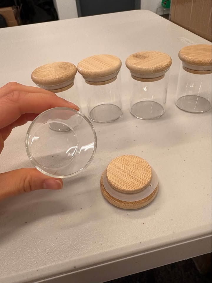 Item Name: 1oz Borosilicate Glass Jars with Air-tight Bamboo Lids