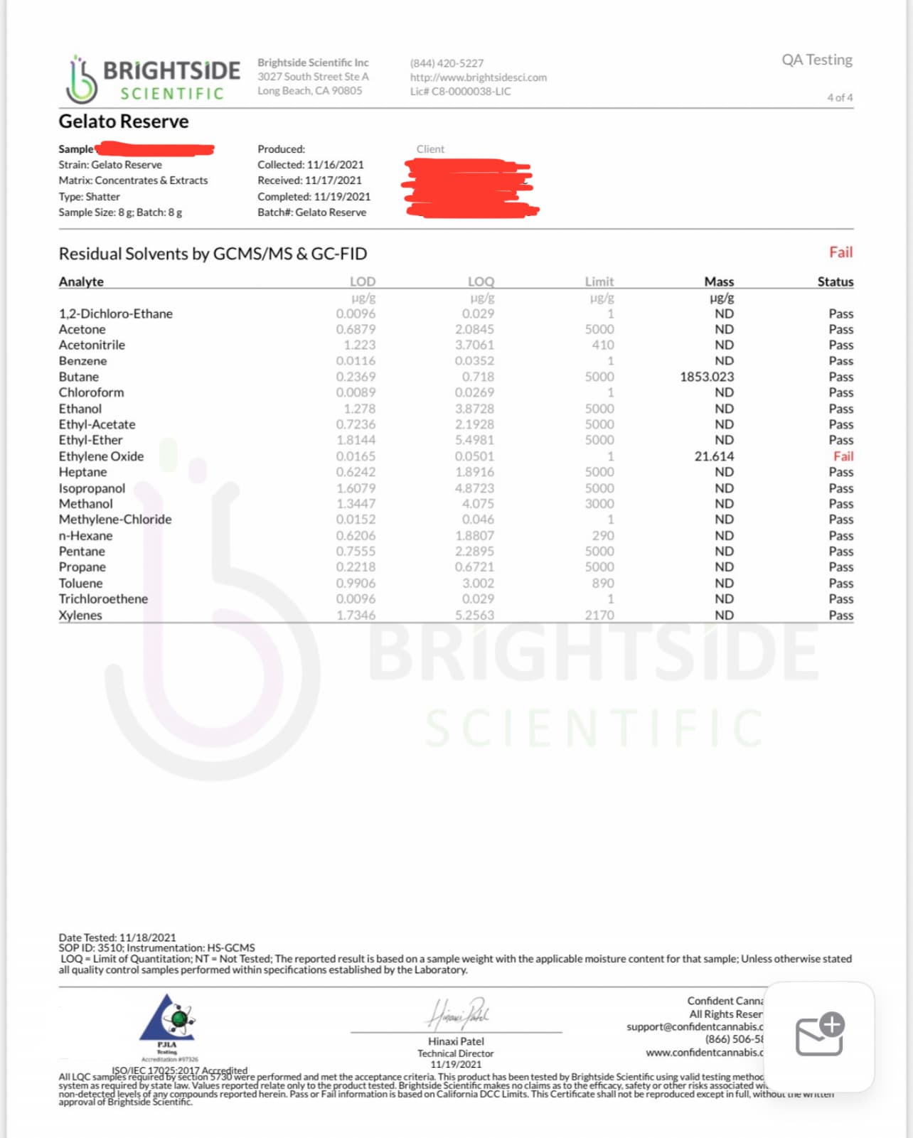 Here’s the coa. When I tested with a different company, it passed. I believe John had the same with brightside as the testing company. Did you pop one hot as well? If so what company did you test with?