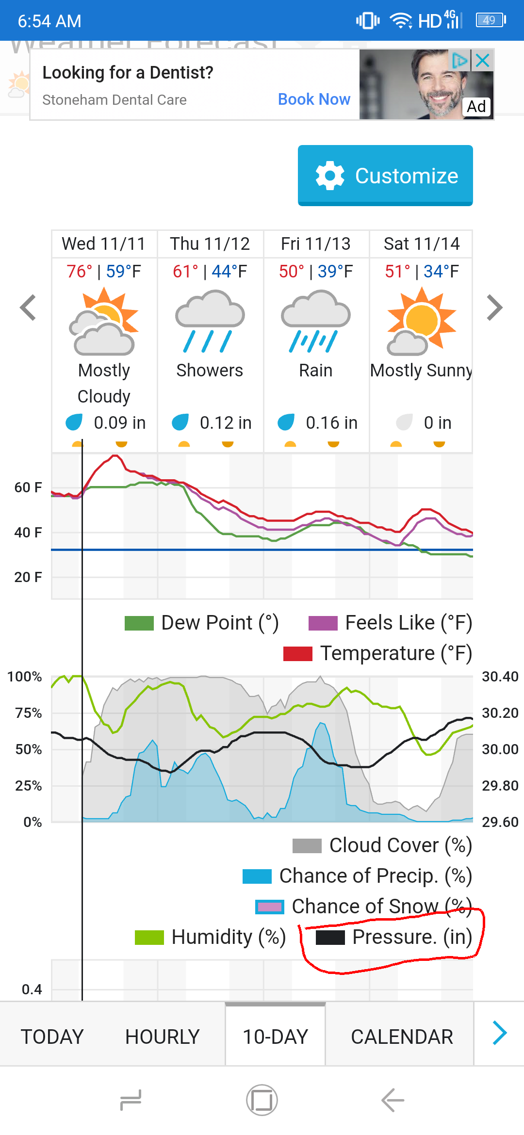 The 10-Day Graph is what I use. I use this site for any day that I want to extract because I extract outdoors.