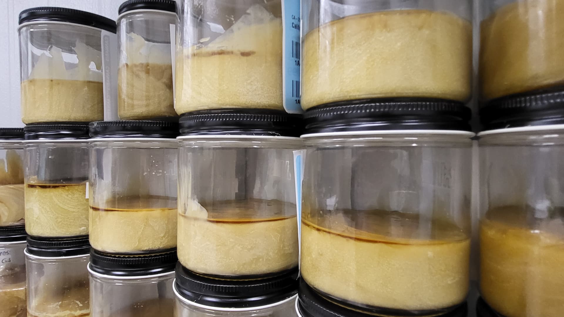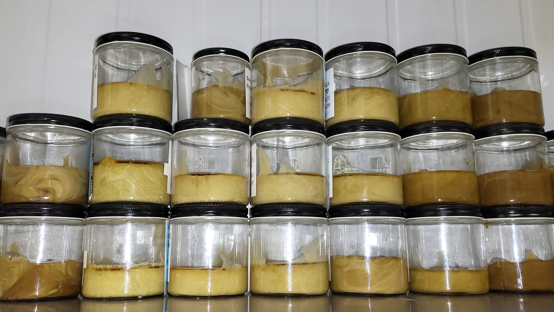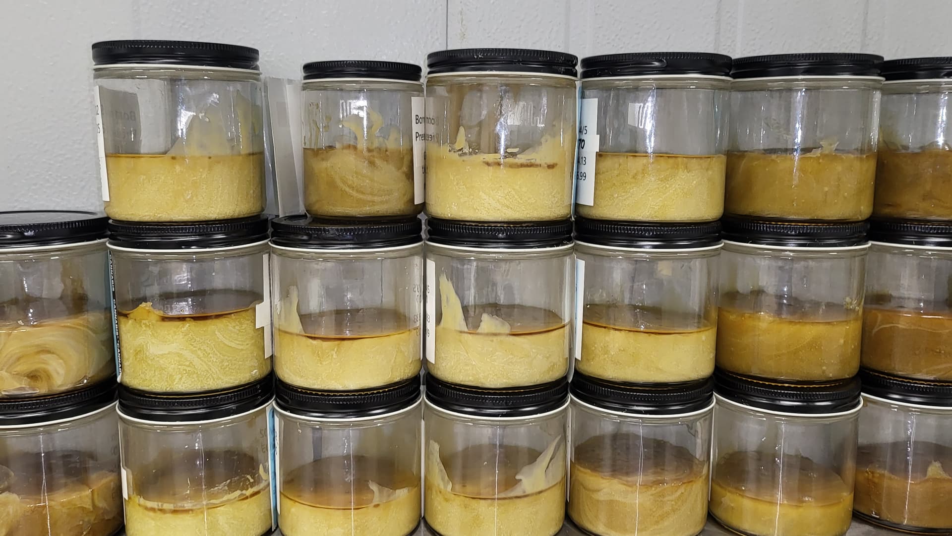 Tons of chunky sugar with diamonds peppered in the bottom. The small jar has shown me though these fuckers can be pumped up big time though