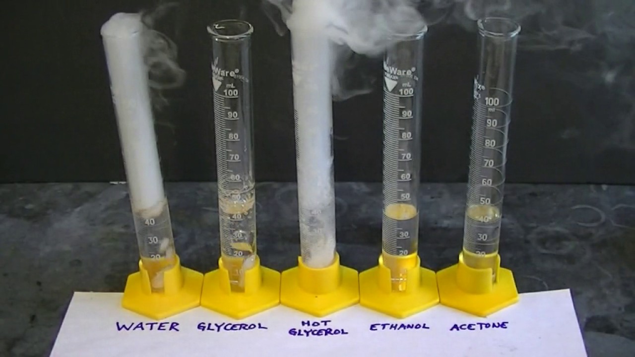 They donāt use isopropyl alcohol in this video, but I feel itās very close to etho alcohol and itās reaction with dry ice.