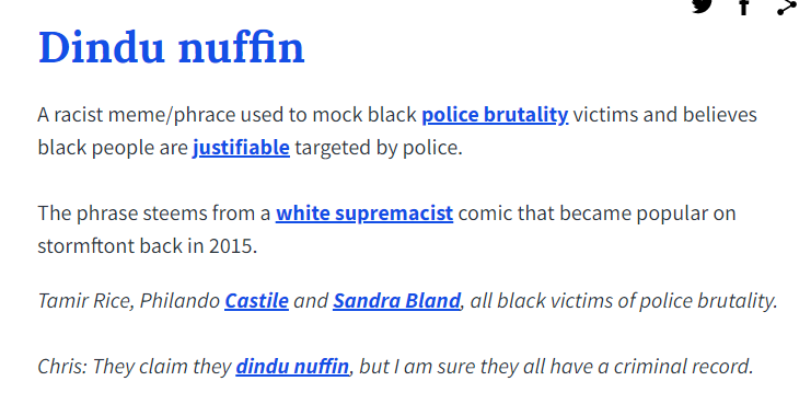 Seriously splitting hairs here with the racist argument… If you read “dindu nuffin”, and pull a racist argument from it; I hate to say it, but you’re probably racist. Or at least thinking about racism entirely way too much. Have a great day everyone!