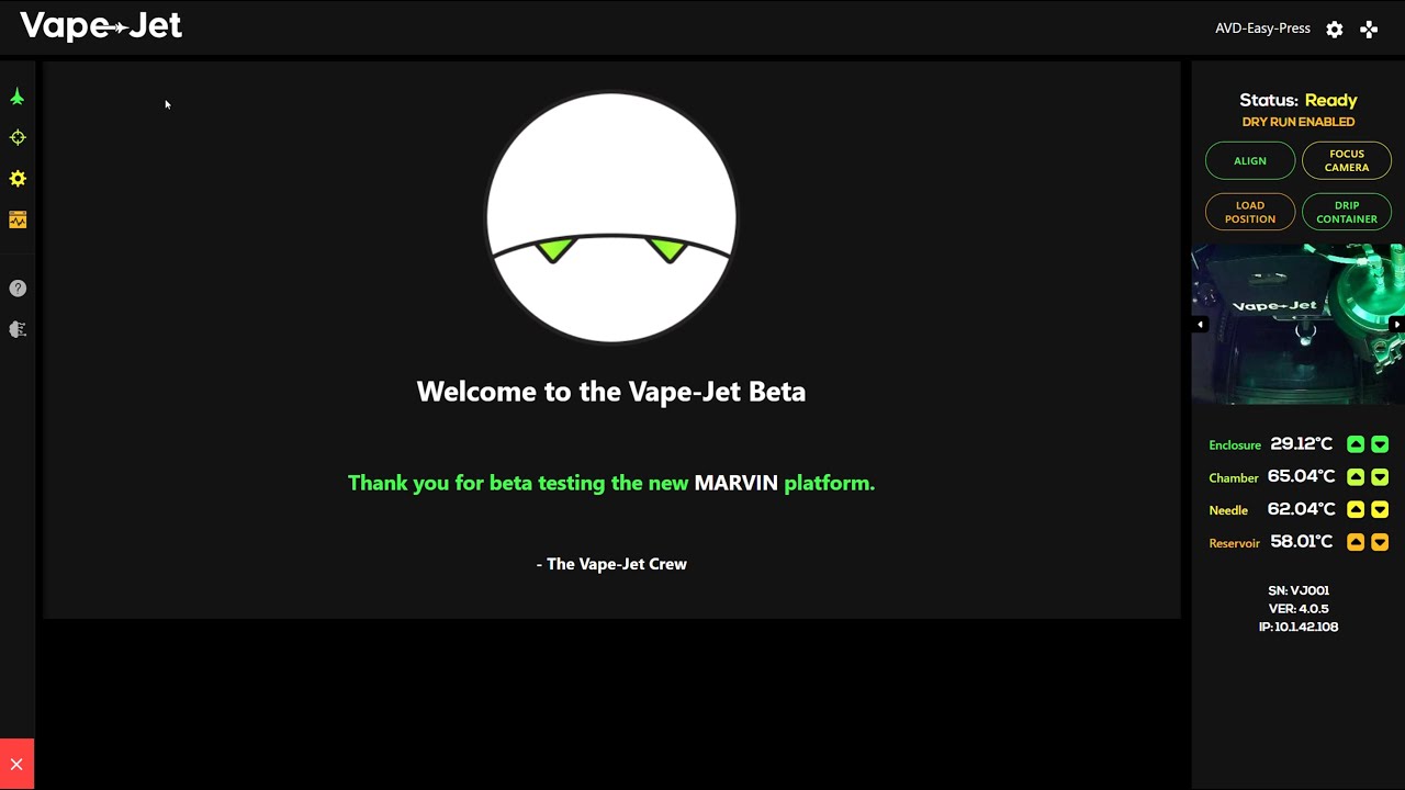 When encountering errors, MARVIN automatically initializes and resets the Vape-Jet 3.0 pump system, reducing clogging from fluids left to cool. Furthermore, the new software links directly to product support documentation, allowing users to easily submit a HelpDesk support ticket.