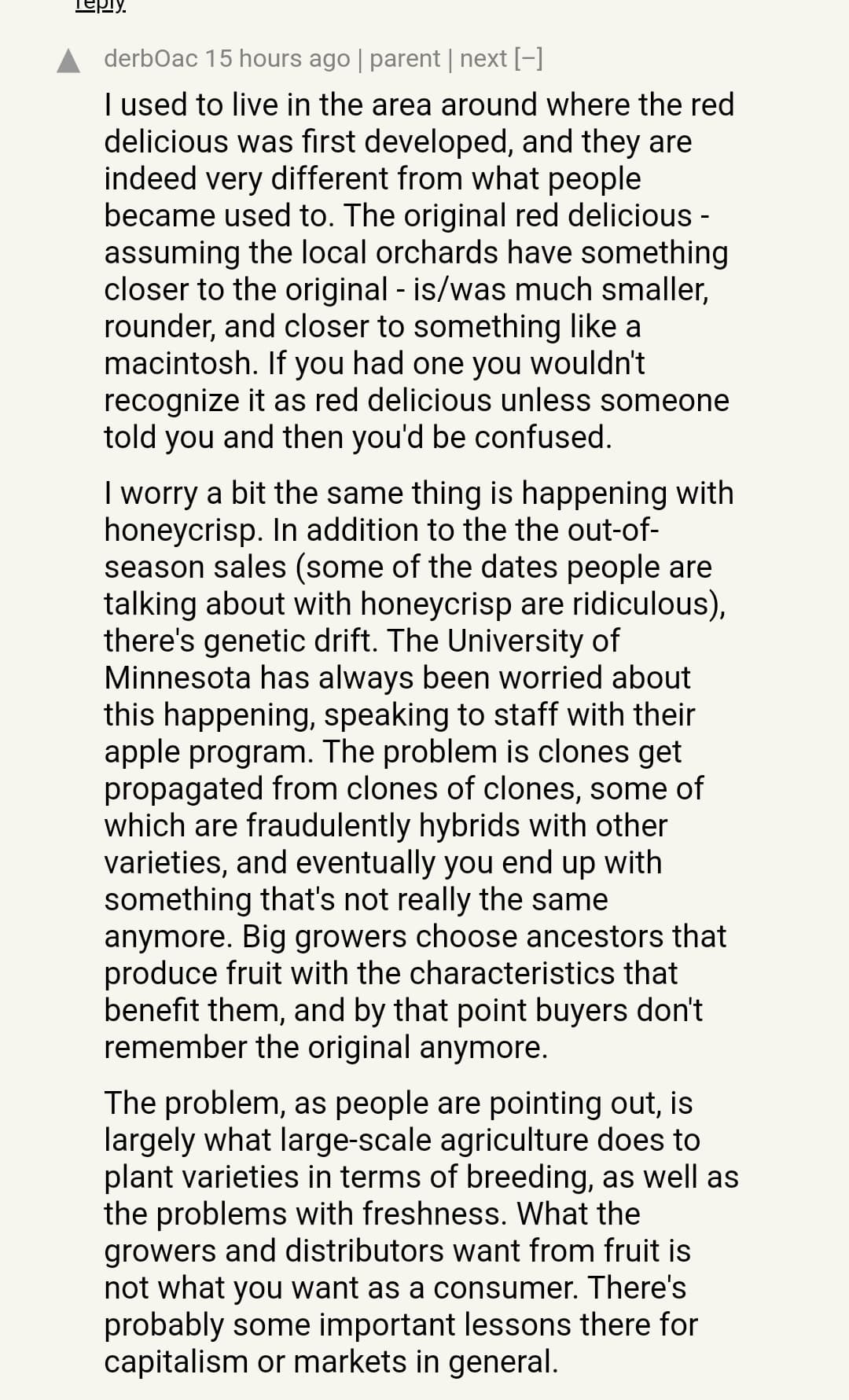My family has been farmer’s market vendors since I was a little kid, so I’ve had the chance to see everything slowly go downhill. Peaches today are nothing like the old varieties my grandpa grew. Tomatoes are also a joke compared to what they used to be. Everything is bred for shelf life, so the fruit are hard as rocks and never ripen correctly. Even with crops like green beans, a variety will change over time. Yield and shelf life go up, flavor goes down.